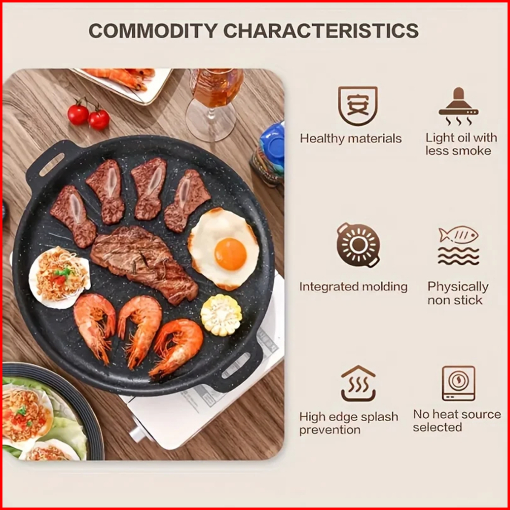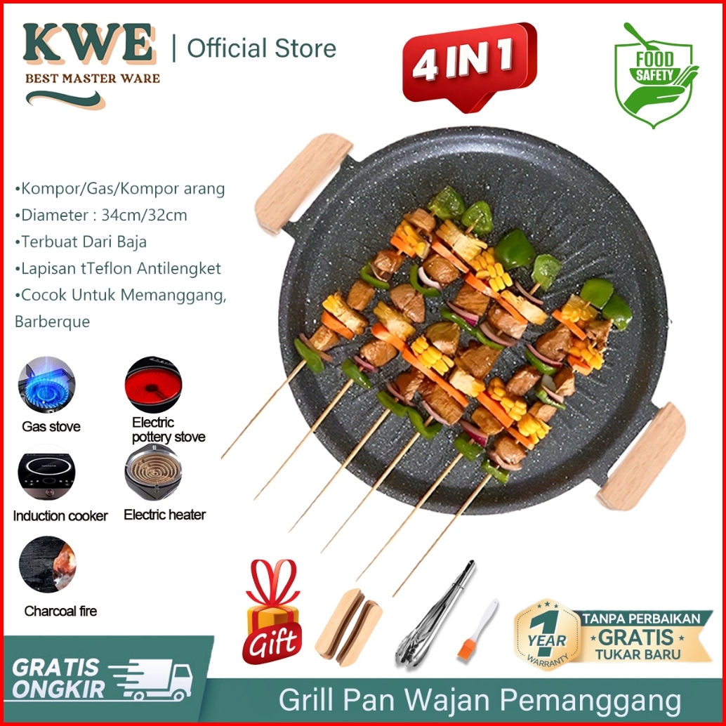 Kwe Panci Wajan Pemanggang Korea 38cm Anti Lengket Bbq Grill Pan Alat Panggang Bisa Untuk Kompor Portable Kompor Induksi