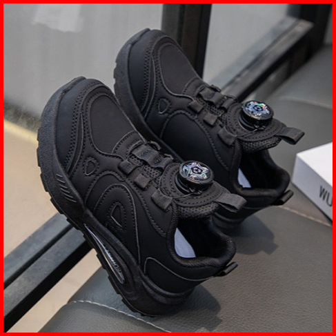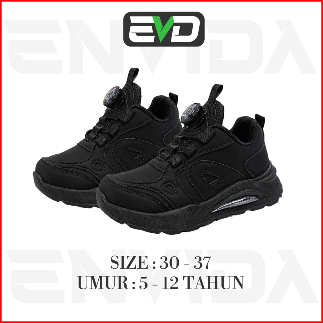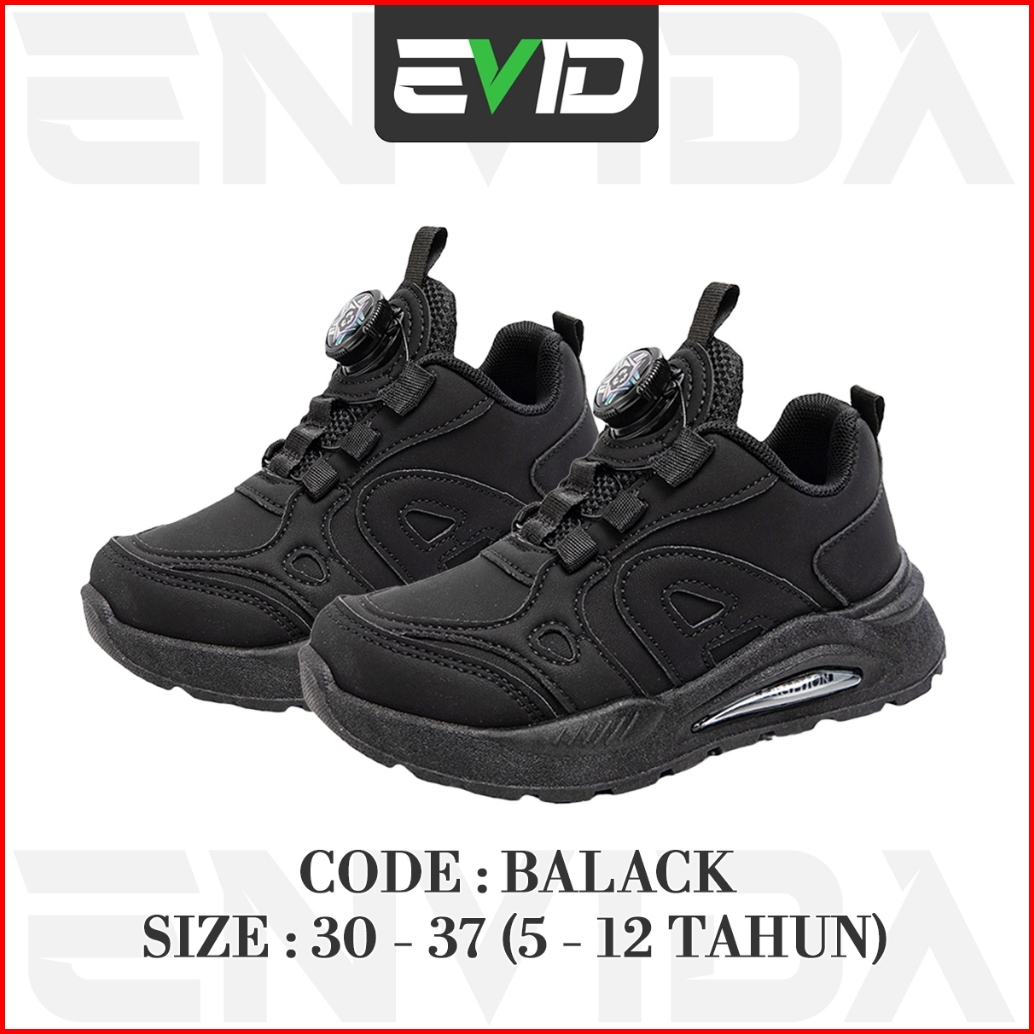 Evid - Sepatu Hitam Full Black Sepatu Sekolah Anak Hitam Rotary Spinlock Untuk Sd Laki Laki Dan Perempuan Umur 5-8 Tahun