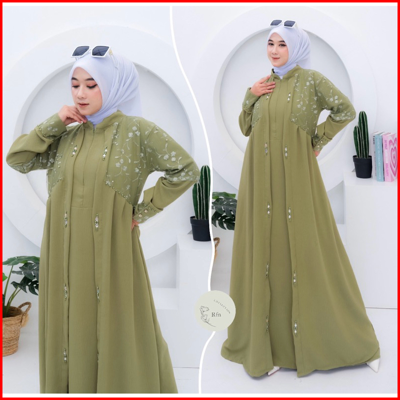 Si Alena Dress Gamis Crinkle Terbaru Mix Brokat Modern Gamis Viral Kekinian