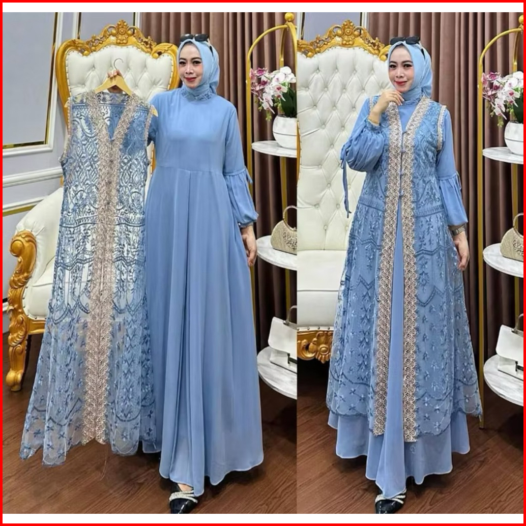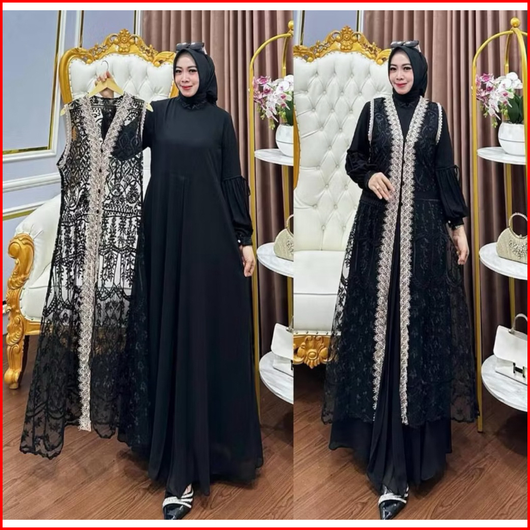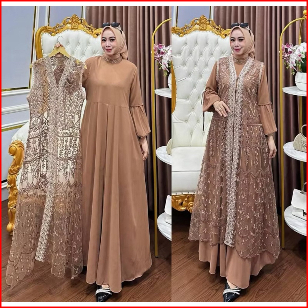 Si Naura Maxy Gamis Muslim Wanita Matt Ceruty Babydoll Pull Puring Mix Brukat Ootd Pesta Kondangan