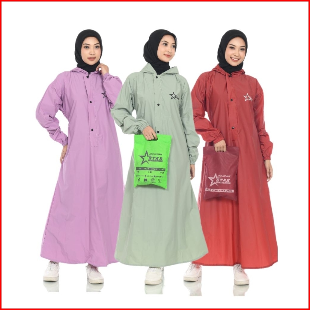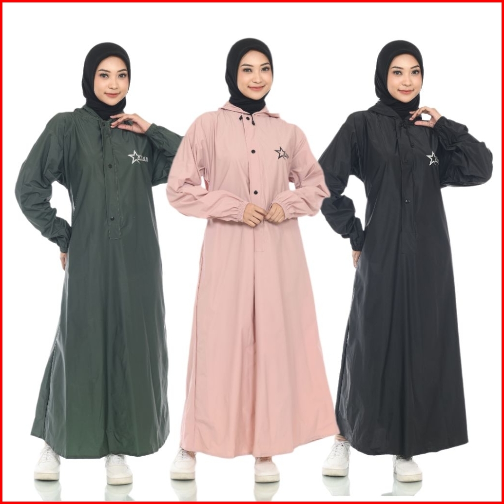 Raincoat Jas Hujan Gamis Syari Wanita Tahan Air Bahan Pvc Anti Rembes