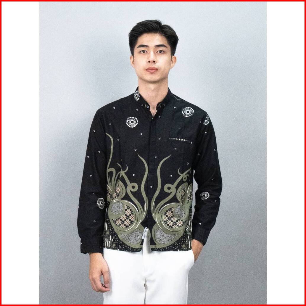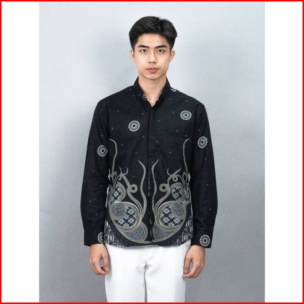 Swipe Up Kemeja Batik Pria Modern Jumbo Lengan Panjang Night