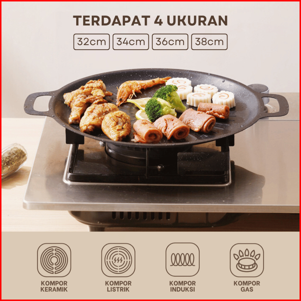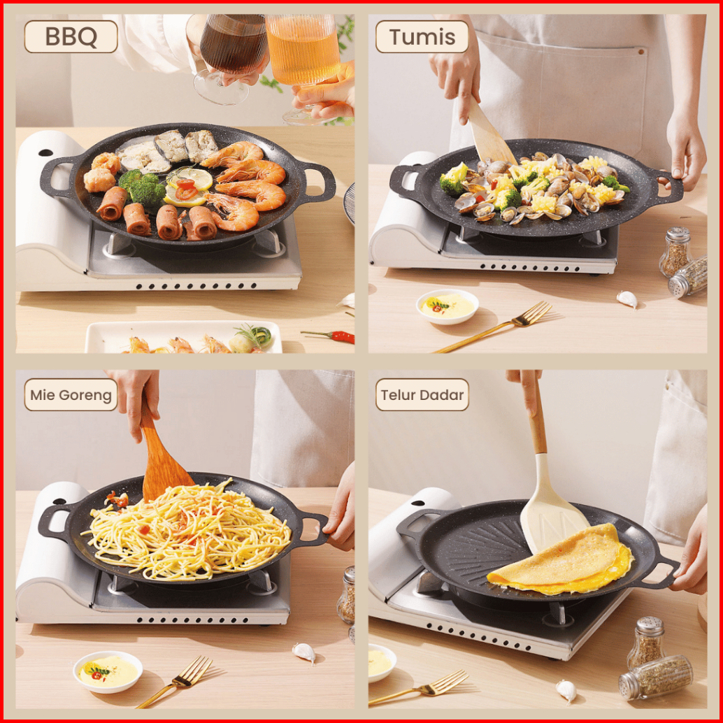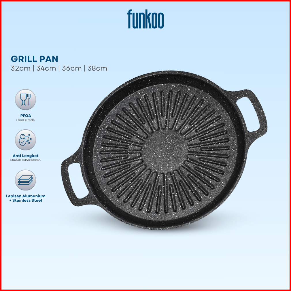 Funkoo Wajan Grill Pan Anti Lengket Grill Pan Bbq Grill Pan Serbaguna Gril Pan 4 Ukuran Premium