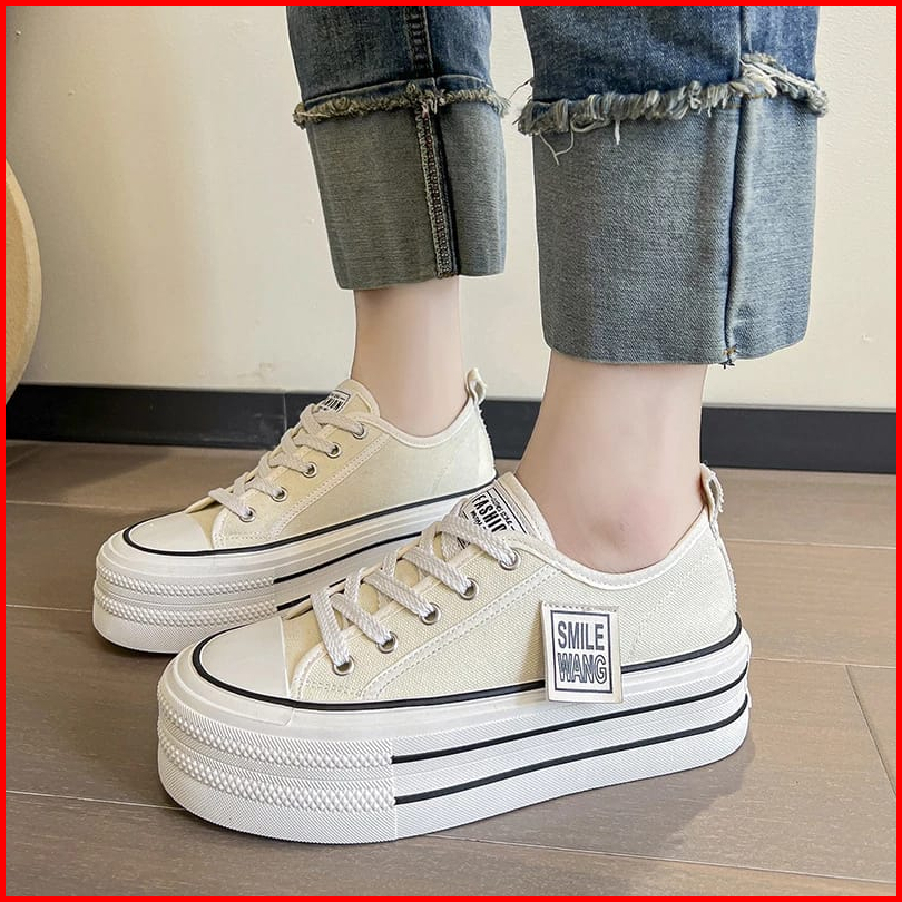 Biang93 Store Sepatu Sneakers Smile Kanvas Fashion Wanita Korea Semi Impor