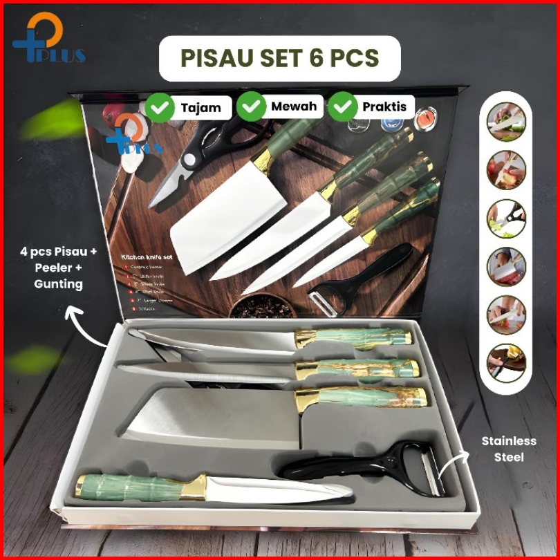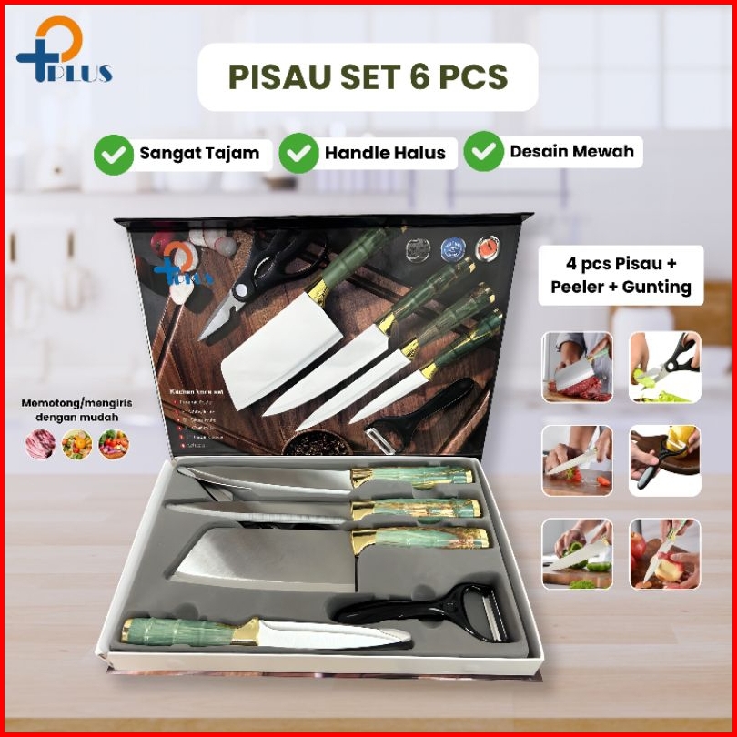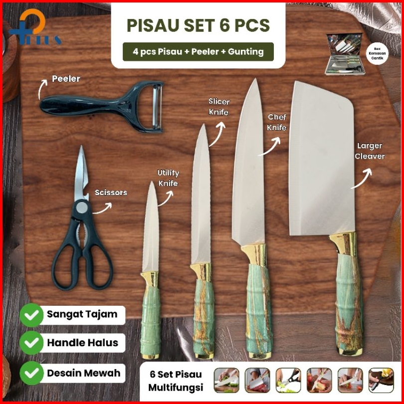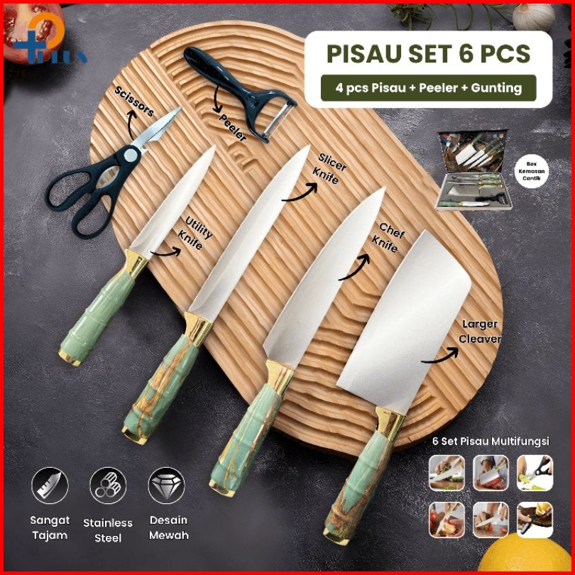 Pplus Pisau Dapur Black Diamond Knives Set 6 In 1 Model Bambu Knife Set Stainless Model Bambu Anti Karat Pisau Dapur Mul