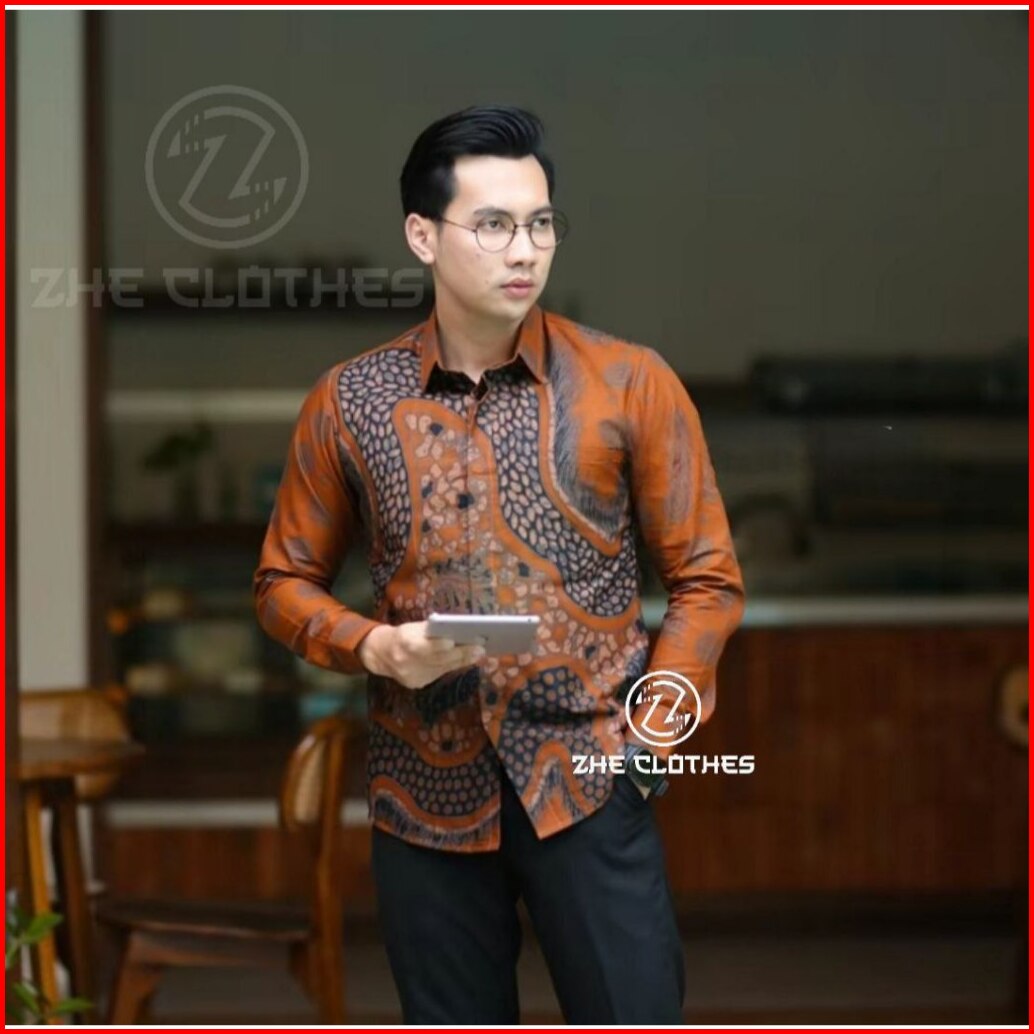 Kemeja Batik Pria Lengan Panjang Motif Watu Kali Reguler Batik Zhe