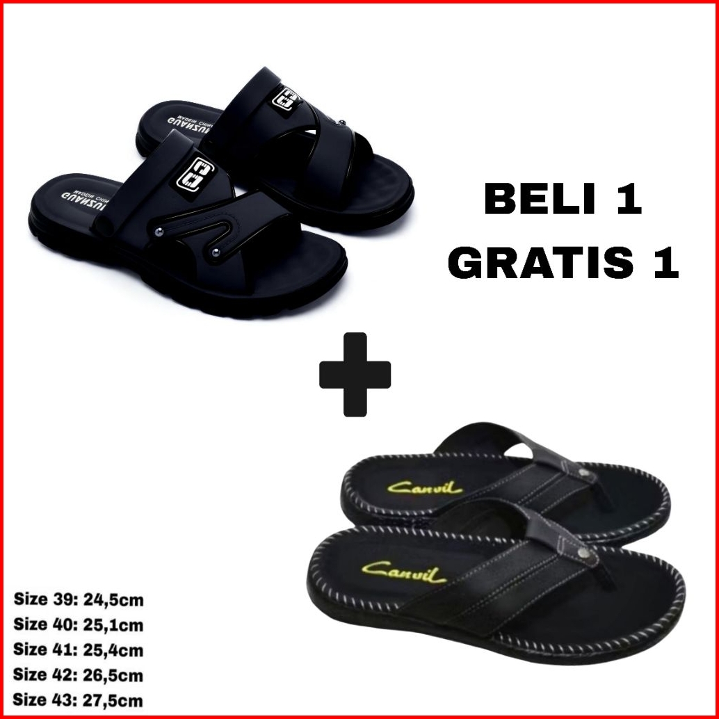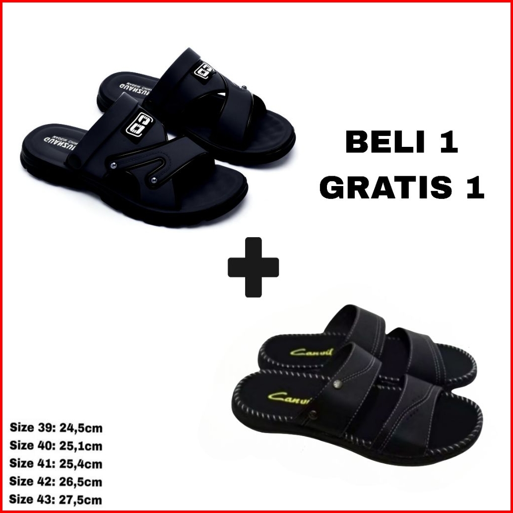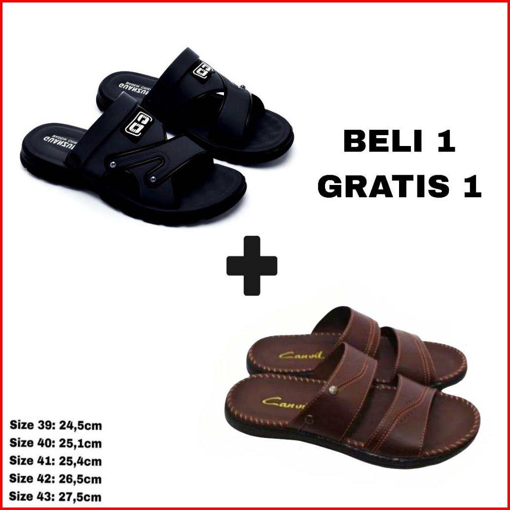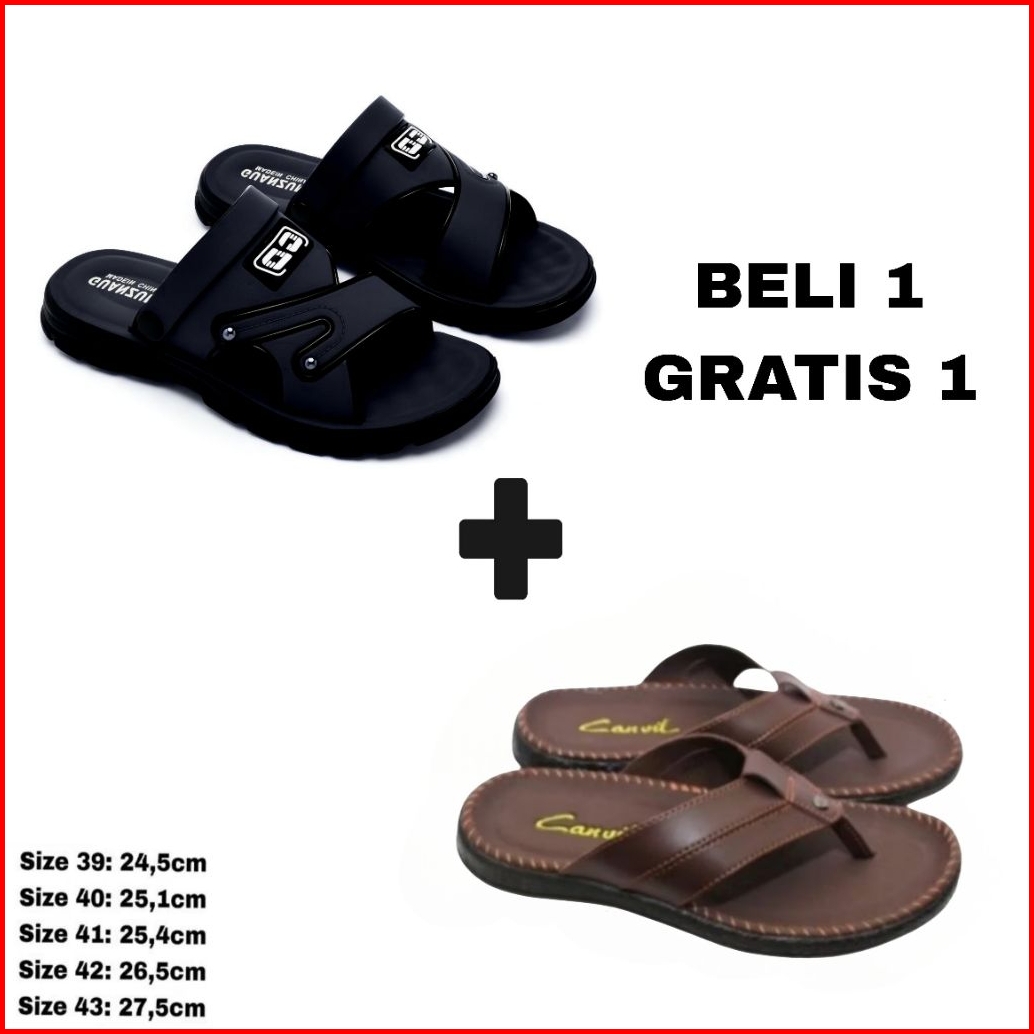 Promo Beli 1 Gratis 1 Sandal Kulit Pria Go Stylish Kekinian Sandal Kasual Pria Sandal Slide Kulit