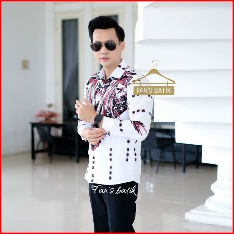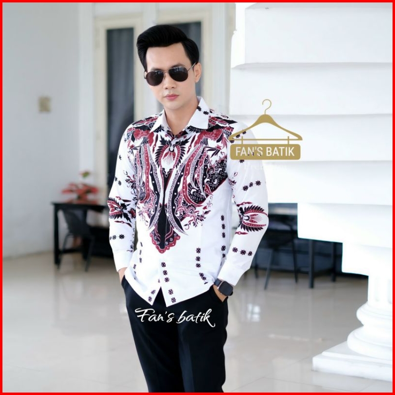 Wiratama Kemeja Batik Pria Slimfit Premium Lapis Furing Lengan Panjang Motif Terbaru Kemeja Atasan Pria Warna Dasar Puti