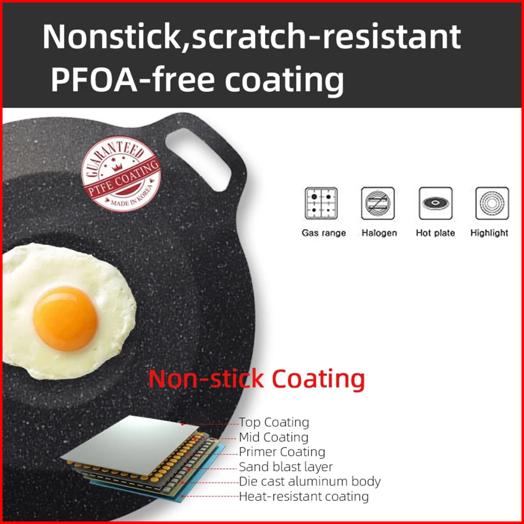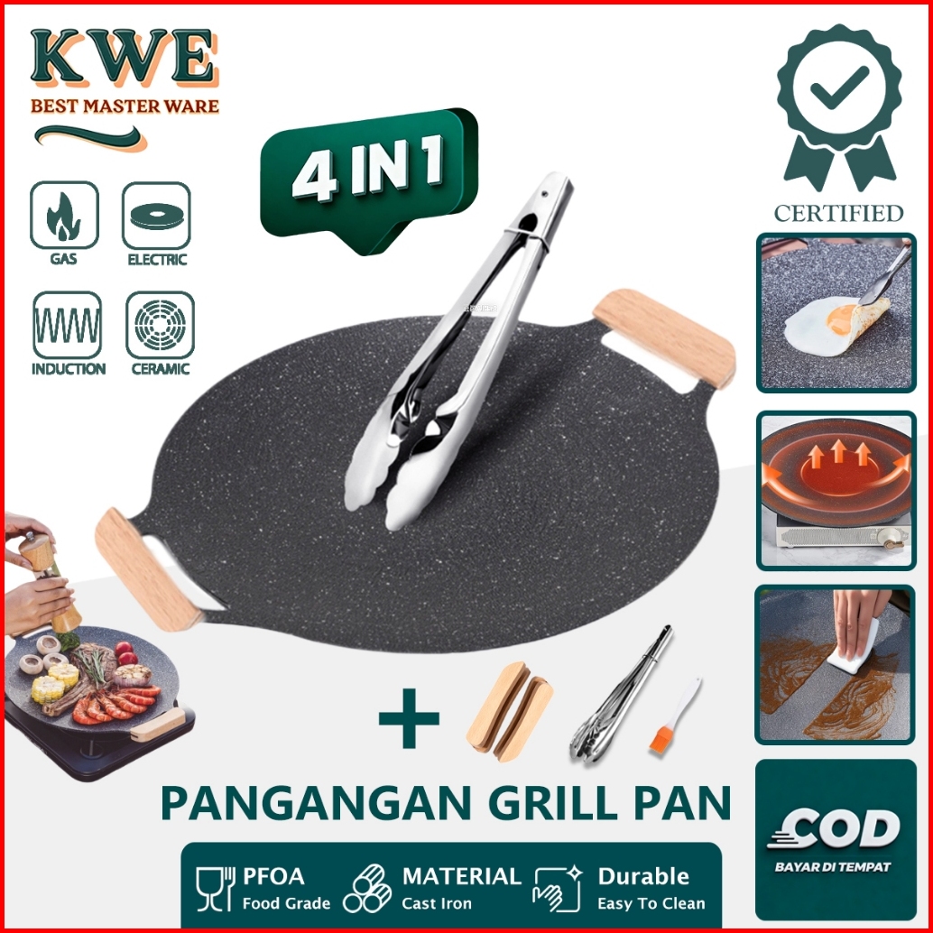 Kwe Grill Pan Bbq Anti Lengket Wajan Konduksi Lapisan Batu Medis Dengan Makanan Diameter 32-38cm Wajan Wajan Serbaguna