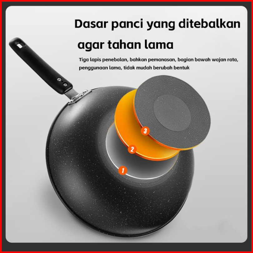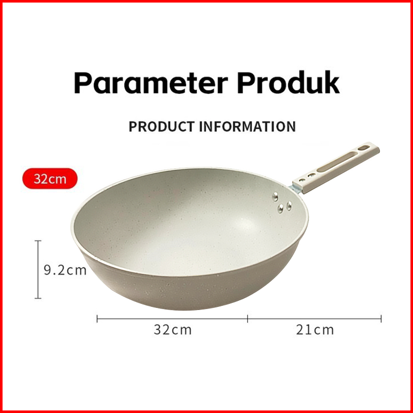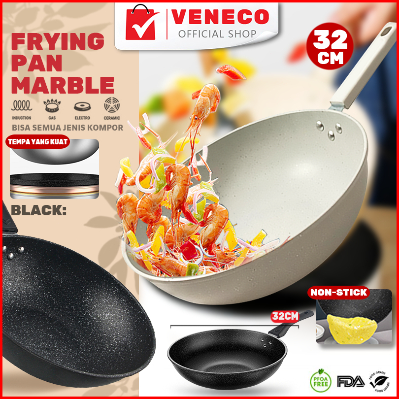Veneco Wokpan White Granite Stainless Series Wajan Granit Putih Wajan Teflon Penggorengan Batu Medis 32cm Anti Lengket