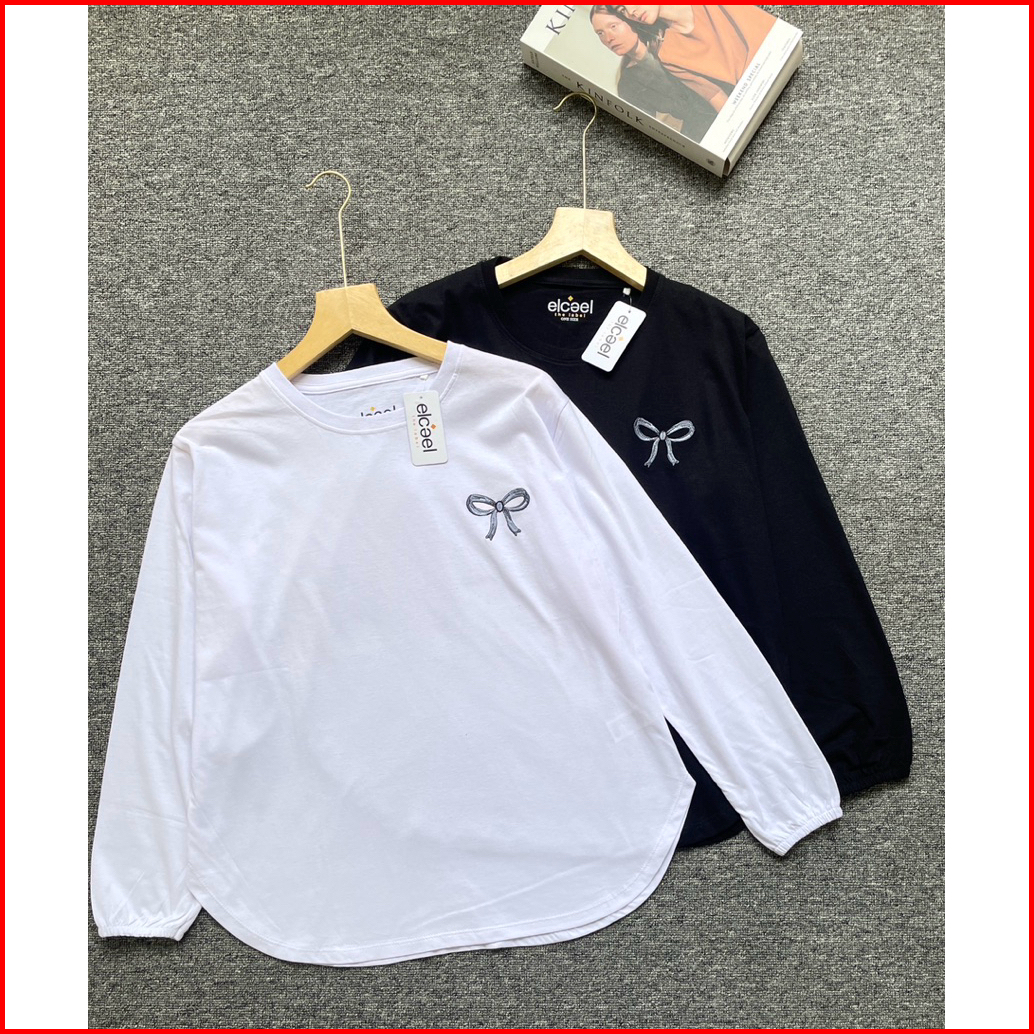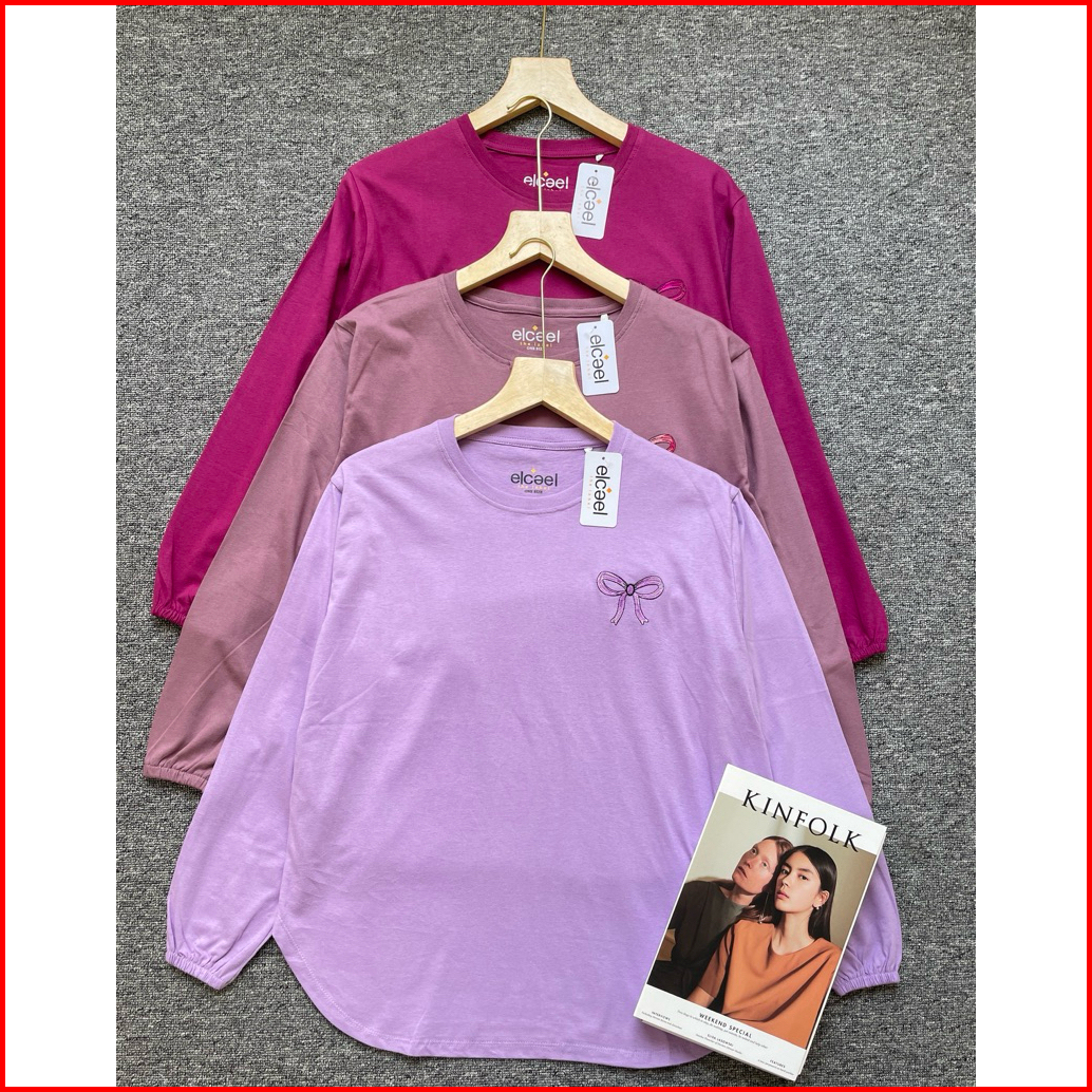 Kaos Lengan Panjang Wanita Bordir Pita Ribbon Bahan Cotton Combed 24s Adem Nyaman Tersedia Banyak Warna Cantik Kaos Elca