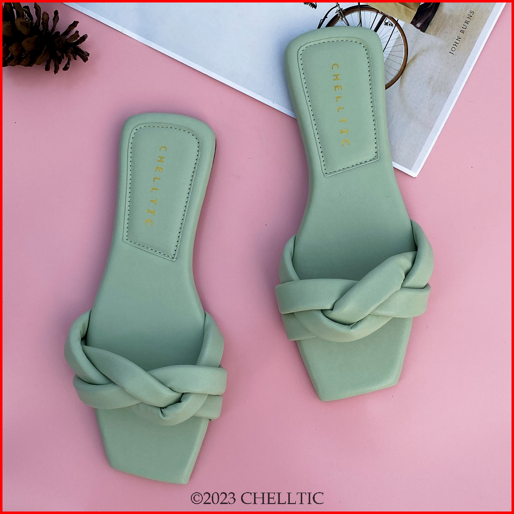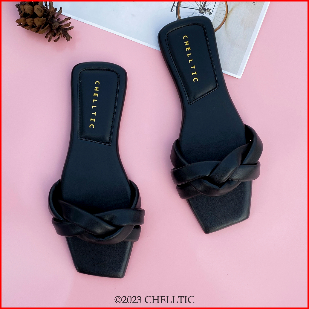 Chelltic Sandal Flat Wanita Slip On Casual Empuk Aksen Kepang Sendal Teplek Rumah Kekinian Terbaru Ukuran 37 - 40