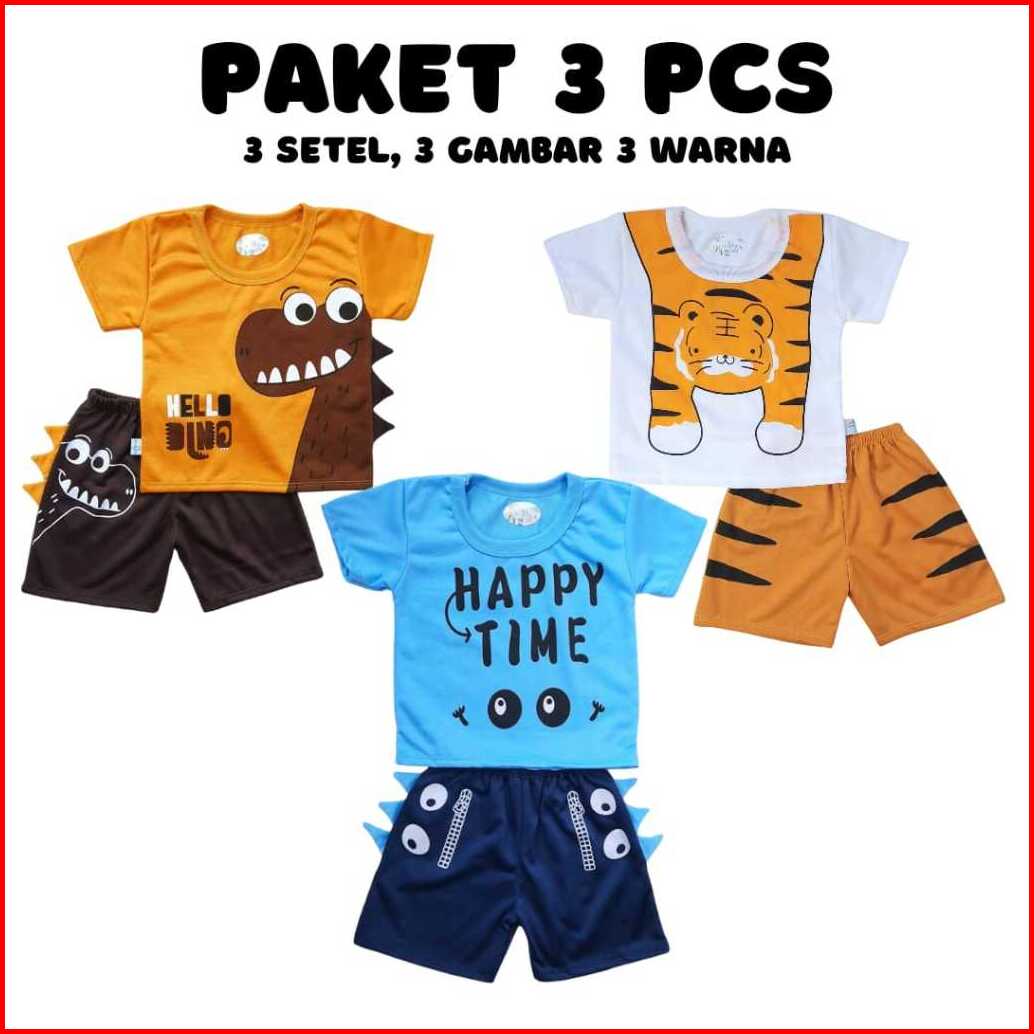 Paket 3pcs Baju Anak Laki Laki 0-2 Tahun Sni Baju Baby Leticia