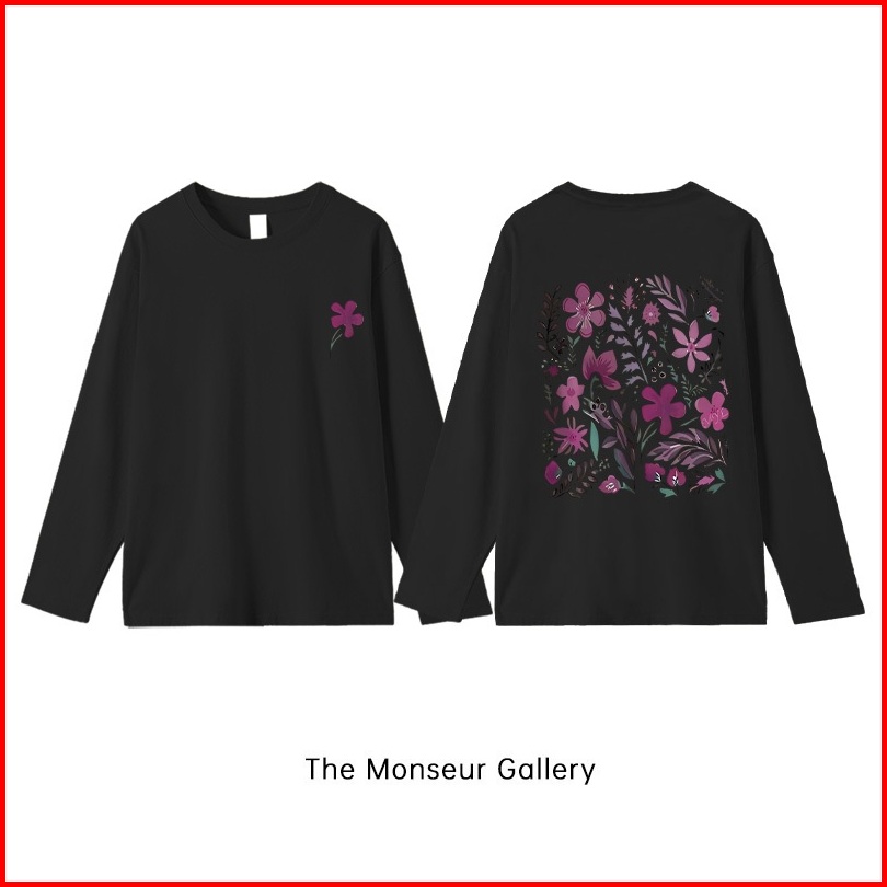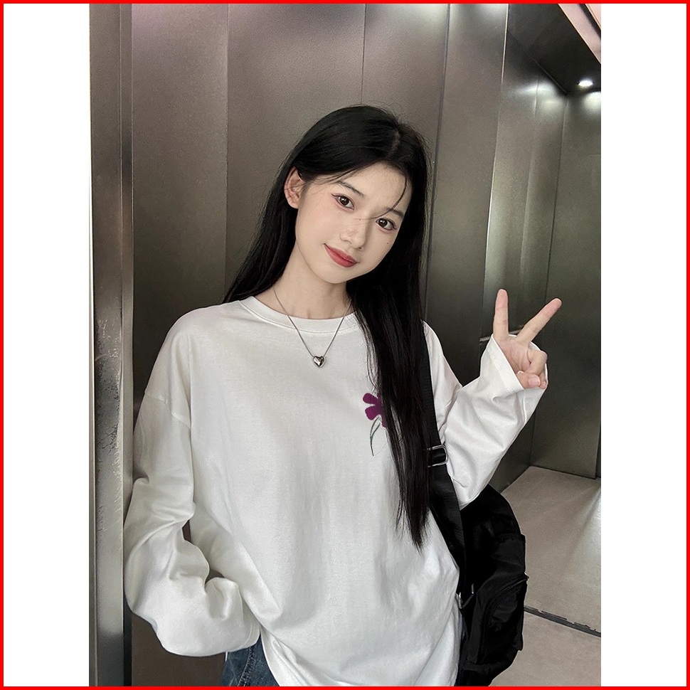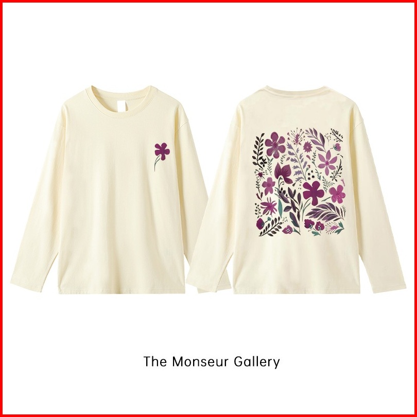 The Monseur Gallery Baju Kaos Wanita Lengan Panjang Kaos Oversize Wanita Baju Atasan Wanita Purple Flowers Style Kaos