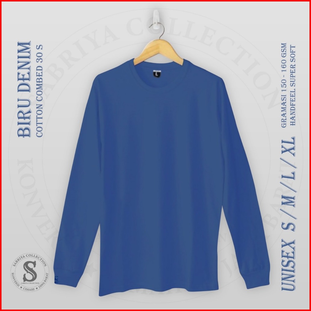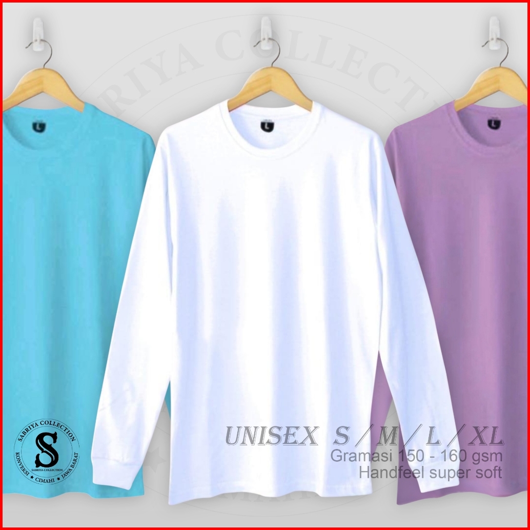 Sabriya Kaos Polos Lengan Panjang Pria Wanita Ujung Rib Katun Combed 30s Premium Overdek 3 Jarum