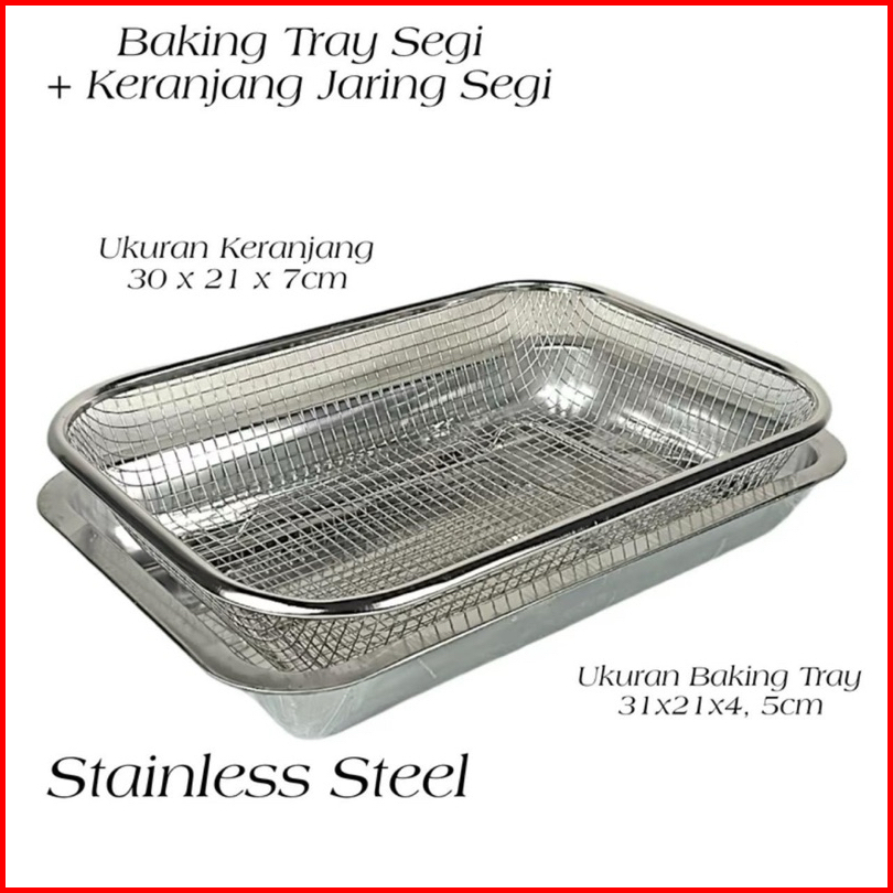 1set Saringan Nampan Stainless Tirisan Minyak Food Drying Try Nampan Keranjang Stainless Peniris Minyak Gorengan Tempura