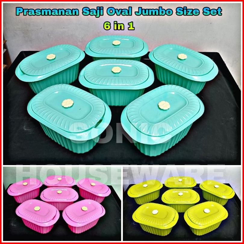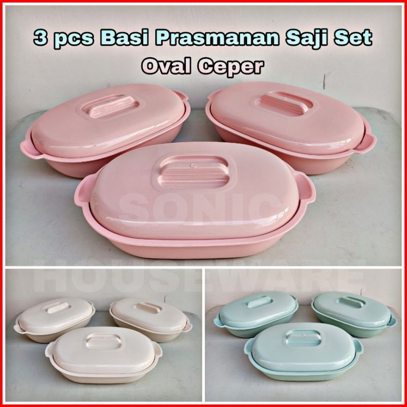 Basi Prasmanan Saji Set Oval Besar Large Size Polos 3 In 1 Tempat Wadah Penyajian Saji Lauk Makanan Tutup Sayur Warna Pi