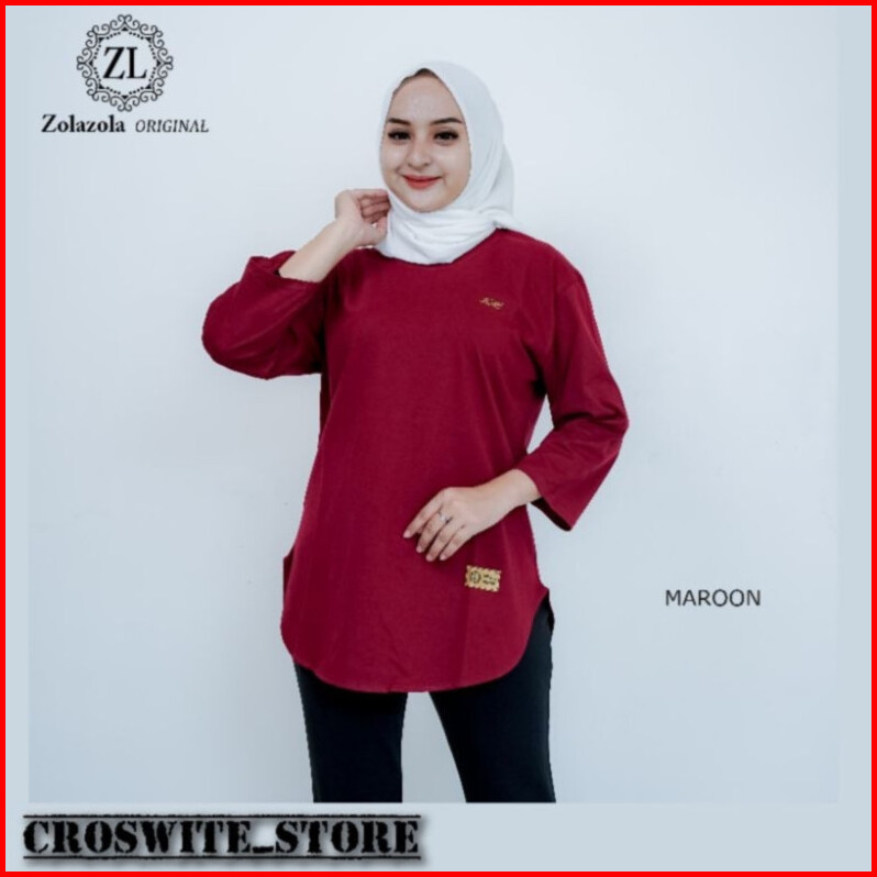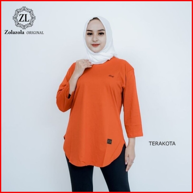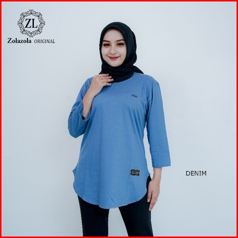 Zolazola Baju Kaos Wanita Oval Lengan 7 8 Kain Katun Combed 24s