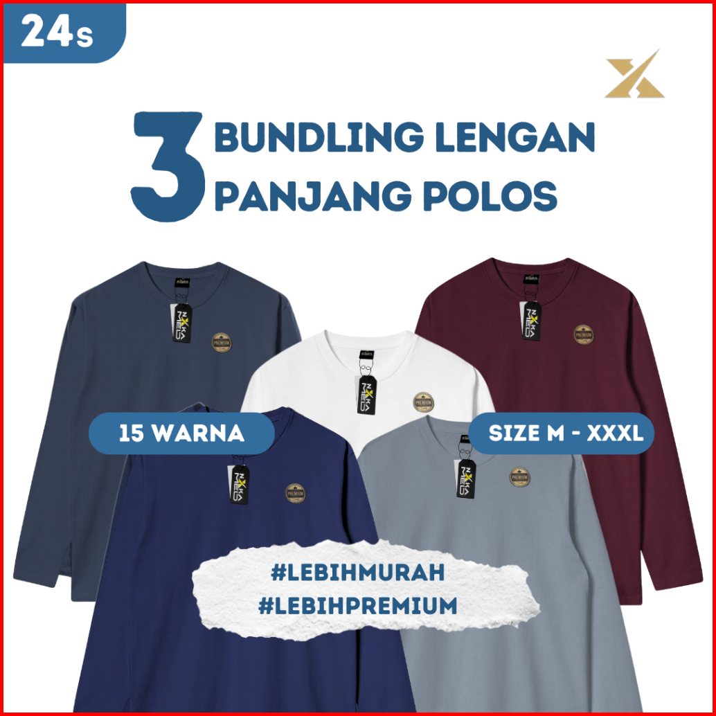 Nakamed - Paket 3 Pcs Kaos Lengan Panjang Polos Pria Wanita Nakamed Poly Cotton 24s