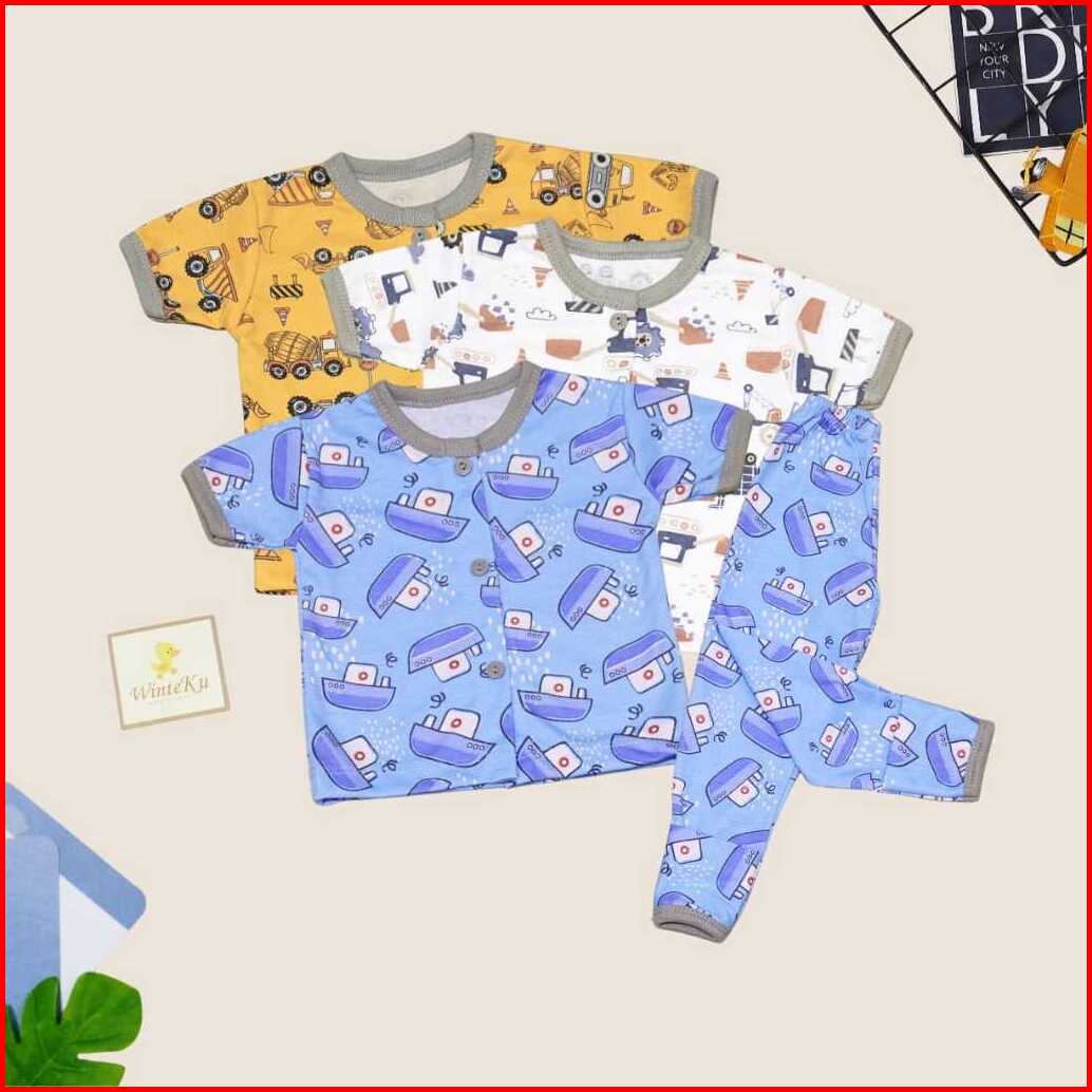Winteku - Setelan Pendek Celana Panjang Motif Cowok Winteku - Baju Bayi - Baju Anak - Baju Tidur Anak