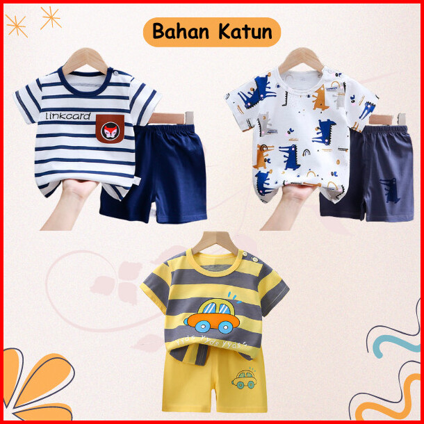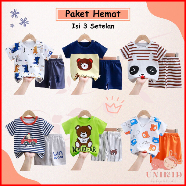 Unikid Paket Hemat 3 Setelan Anak Baju Bayi Lengan Pendek Umur 0 6 Tahun
