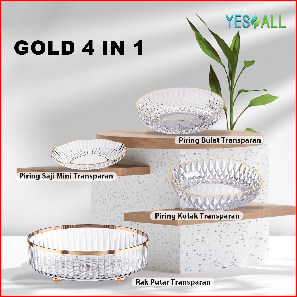 Buy1get4 Yesall Rak Kosmetik Piring Saji Transparan Aesthetic - Rak Putar Tempat Make Up Tray Rak Skincare Makeup Bumbu