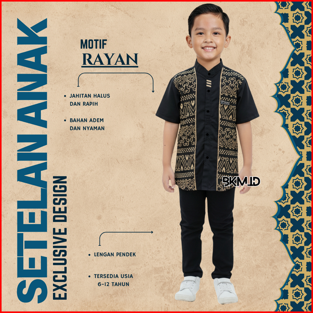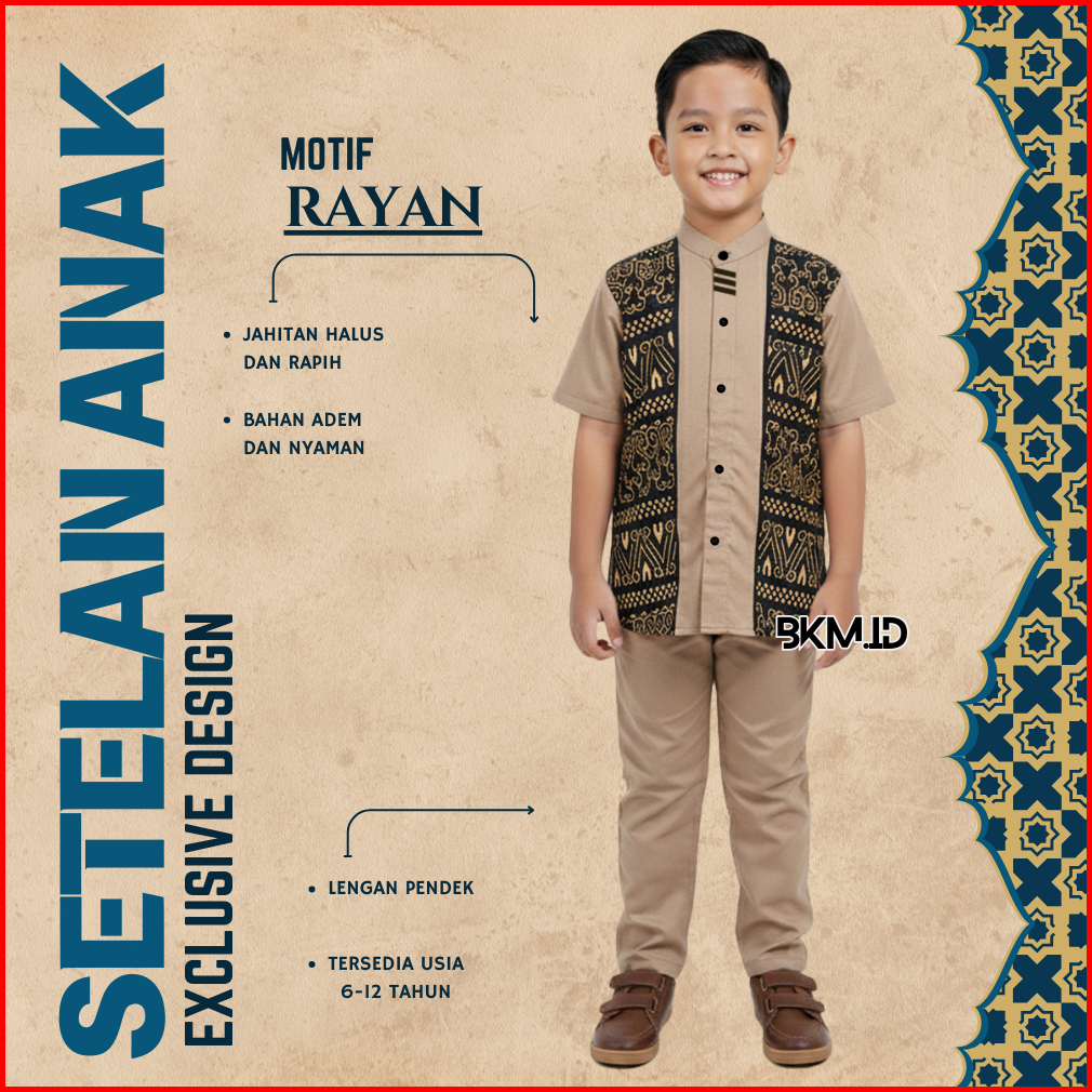 Baju Koko Anak Laki-laki Setelan Koko Anak Lengan Pendek Usia 2-12 Tahun