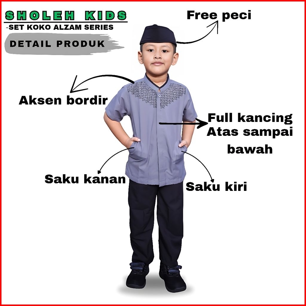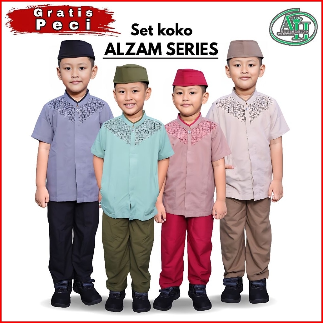 Setelan Koko Anak Alzam Series Lengan Pendek Usia 1-12 Tahun Free Peci