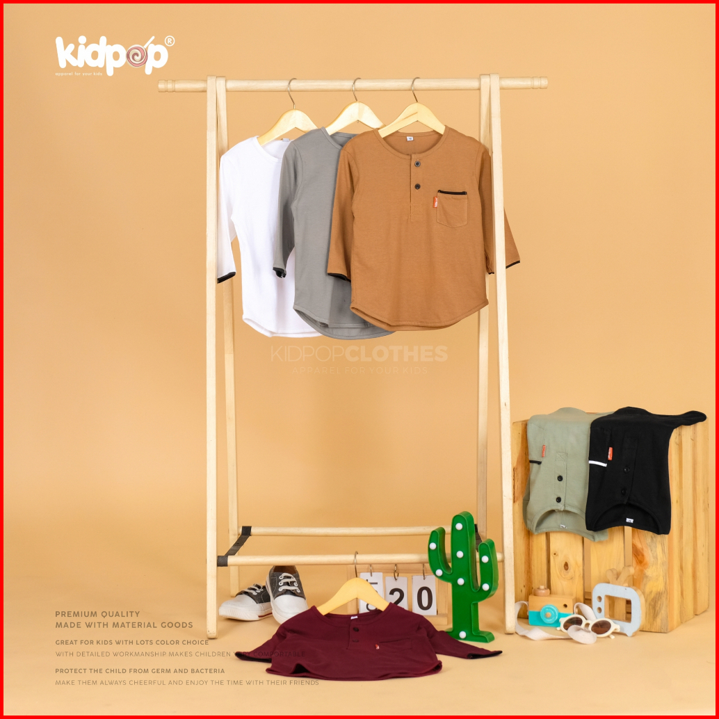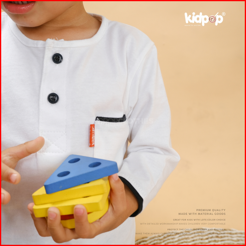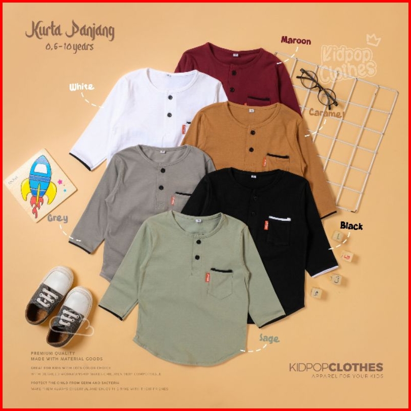 Kidpop Baju Koko Kurta Anak Lengan Panjang Bahan Kaos Cotton 30s Usia 0 6-10 Tahun