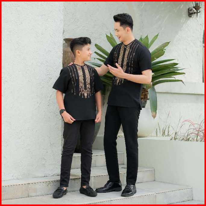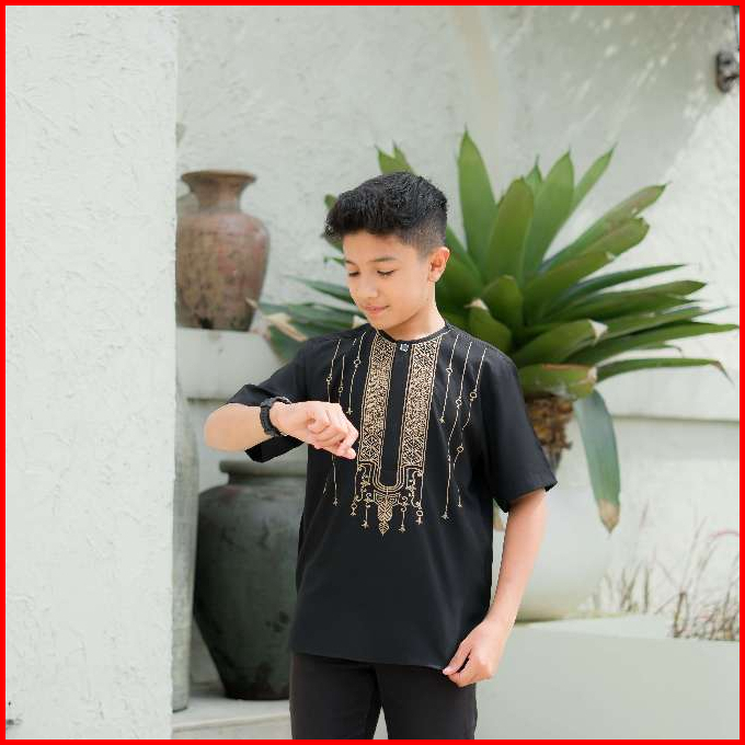 Fatih Dan Firra Atasan Koko Anak Noir Hitam Border Premium Sarimbit