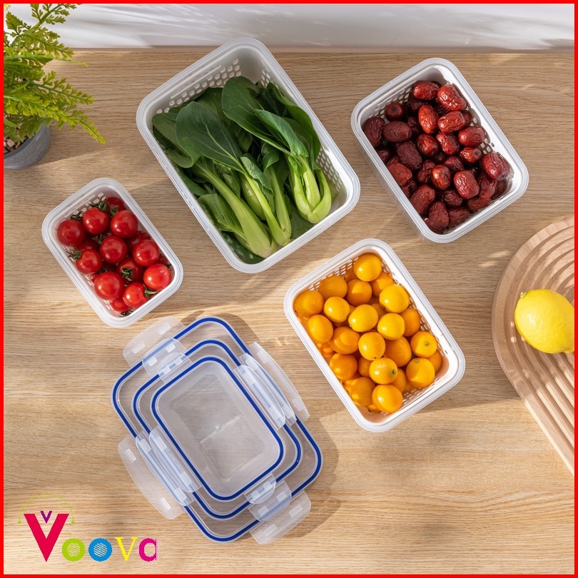 Voova Keranjang Saringan Pengering Sayur Keranjang Buah Pengering Sayuran Saringan Serbaguna Kotak Penyimpanan Multifung