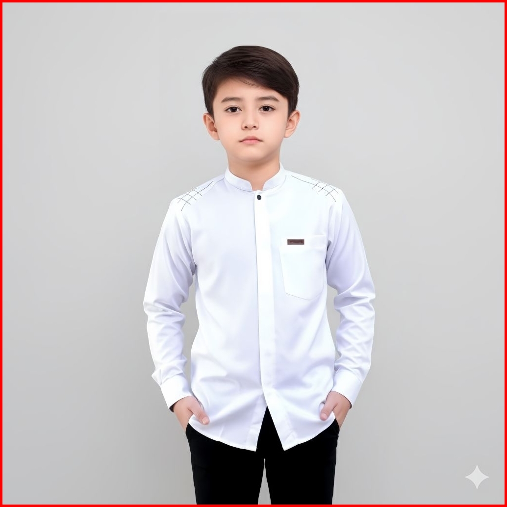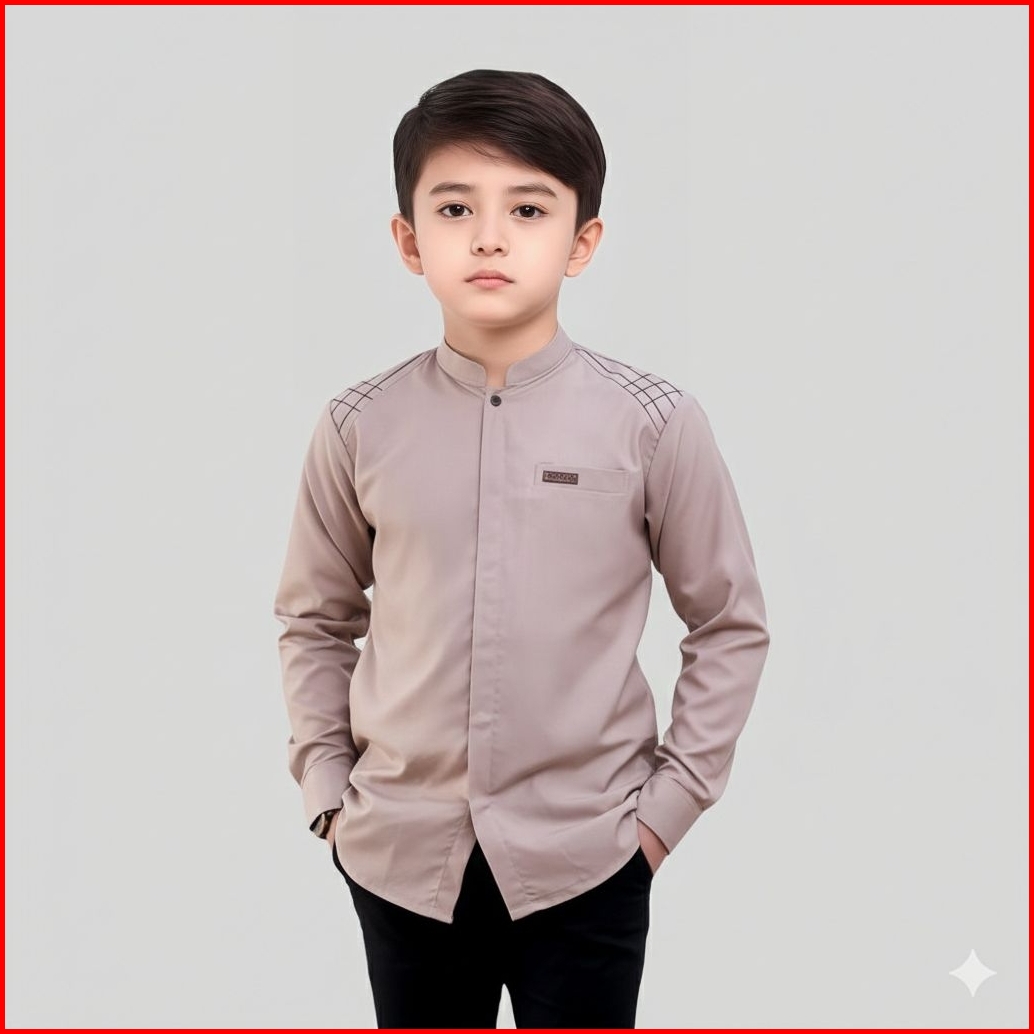 Alqorni Baju Kemeja Koko Anak Laki-laki Lengan Panjang Motif Polos Model Rubby Series