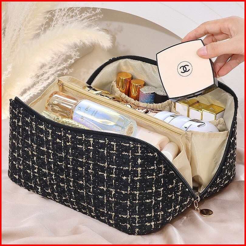 Jj-785 Tas Kosmetik Pouch Makeup Lipat Travel Pouch Wanita Pouch Kosmetik Tweed Rajut Jumbo Pouch Make Up Tempat Alat Ma