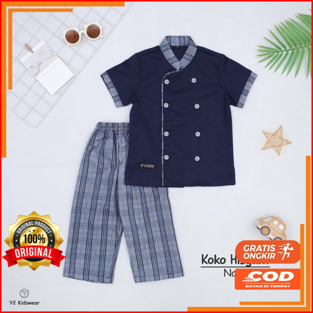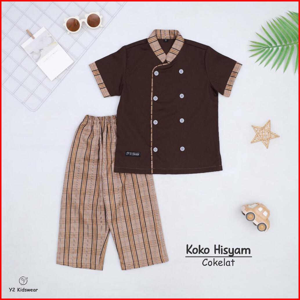 Setelan Baju Koko Anak Laki Laki Lengan Pendek 1-10 Tahun Pakaian Baju Muslim Anak Koko Hisyam