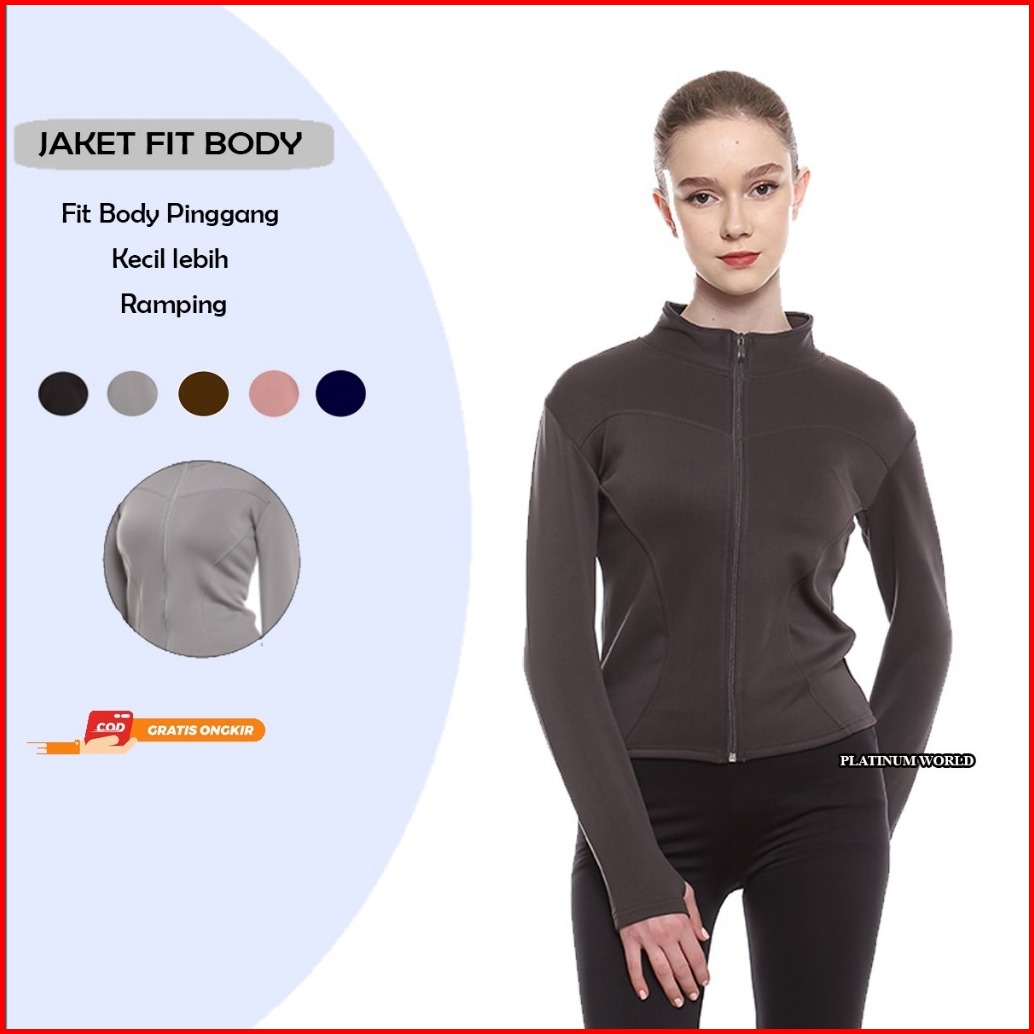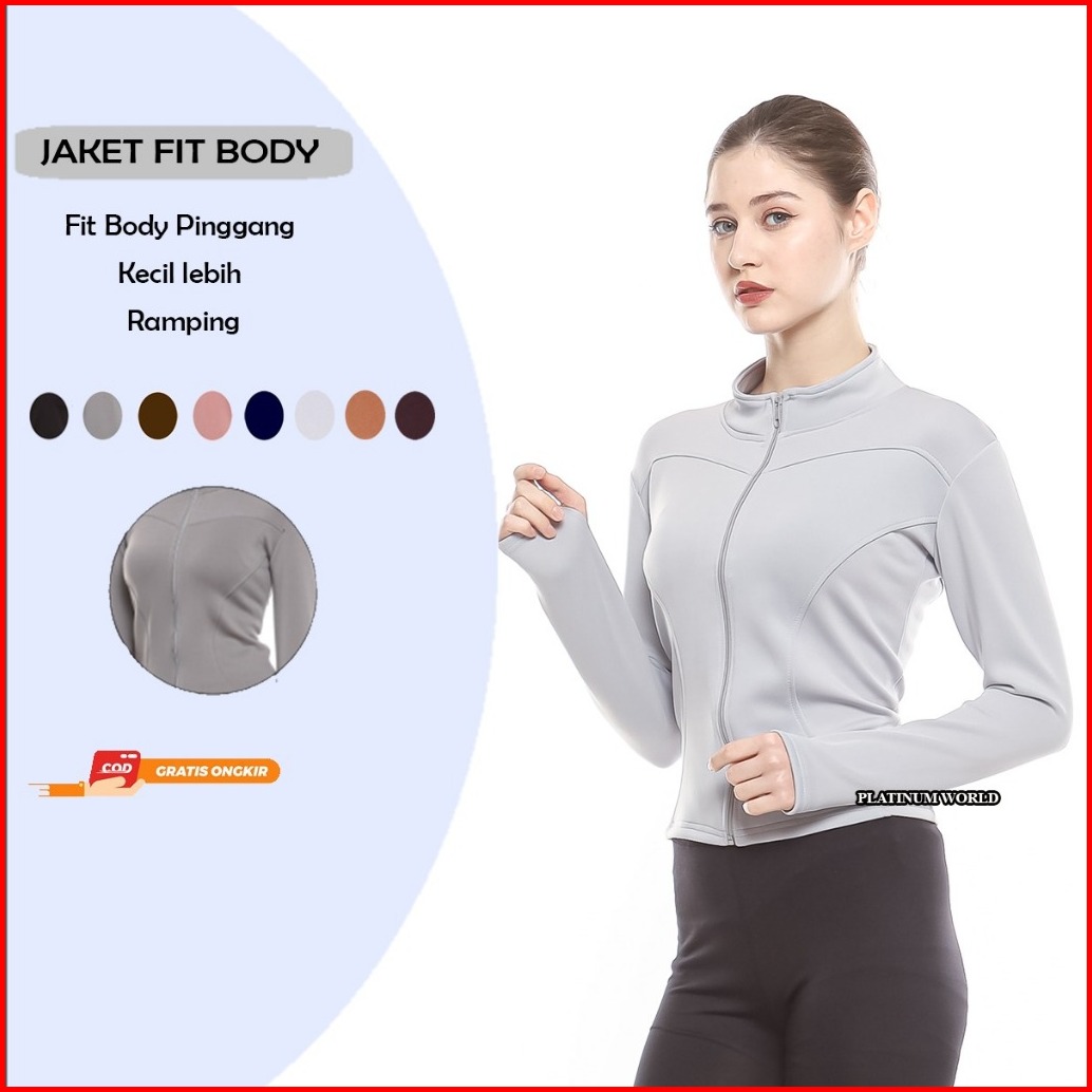 Platinum World Jaket Olahraga Lengan Panjang Fit Body Wanita Yoga Pilates Lari Gym Fitnes Coffee Premium Quality S2