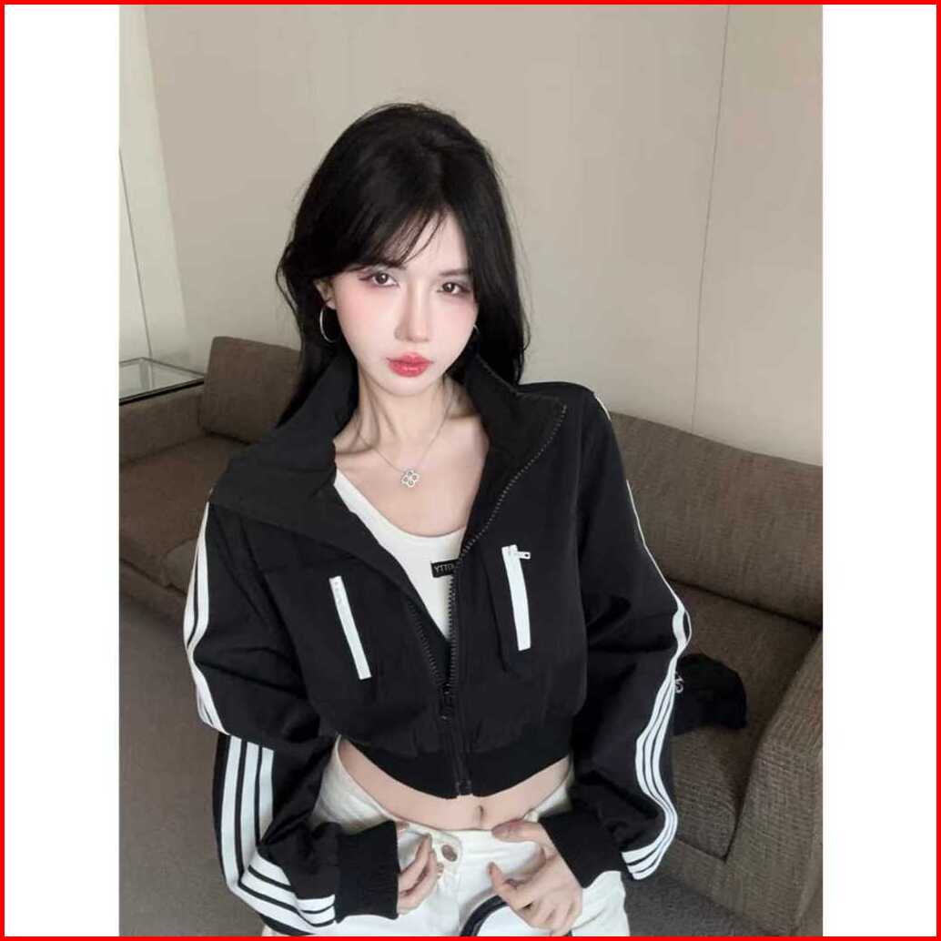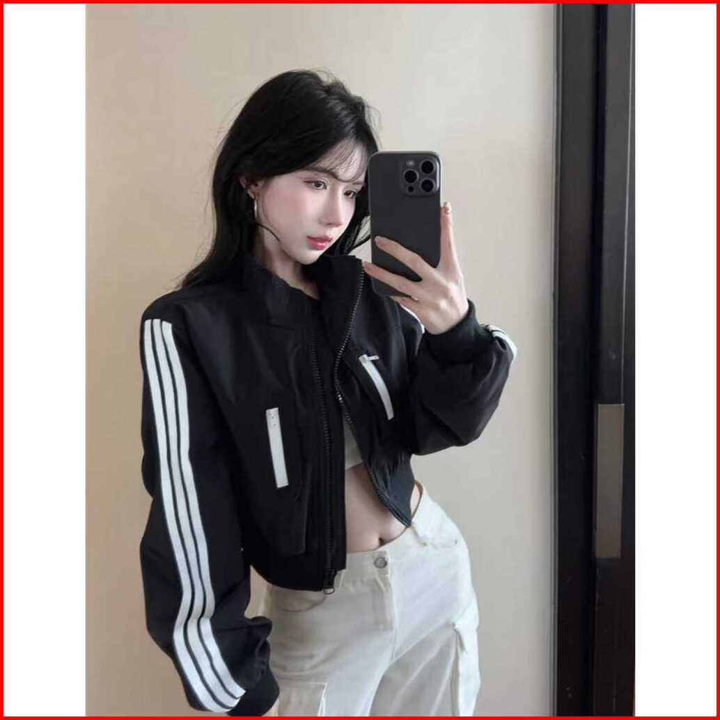 Jaket Crope Wanita - Mercie Crope Jaket Zipper Korean Style Corean - Jaket Varsity