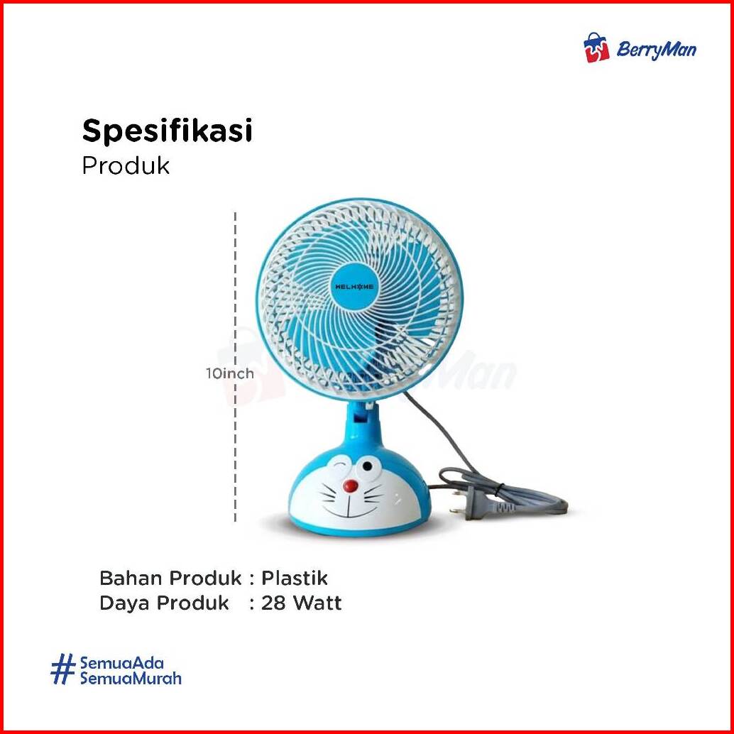 Welhome Kipas Angin Meja Karakter Wh-601d 10 Inch 28w Cartoon Desk Wall Fan