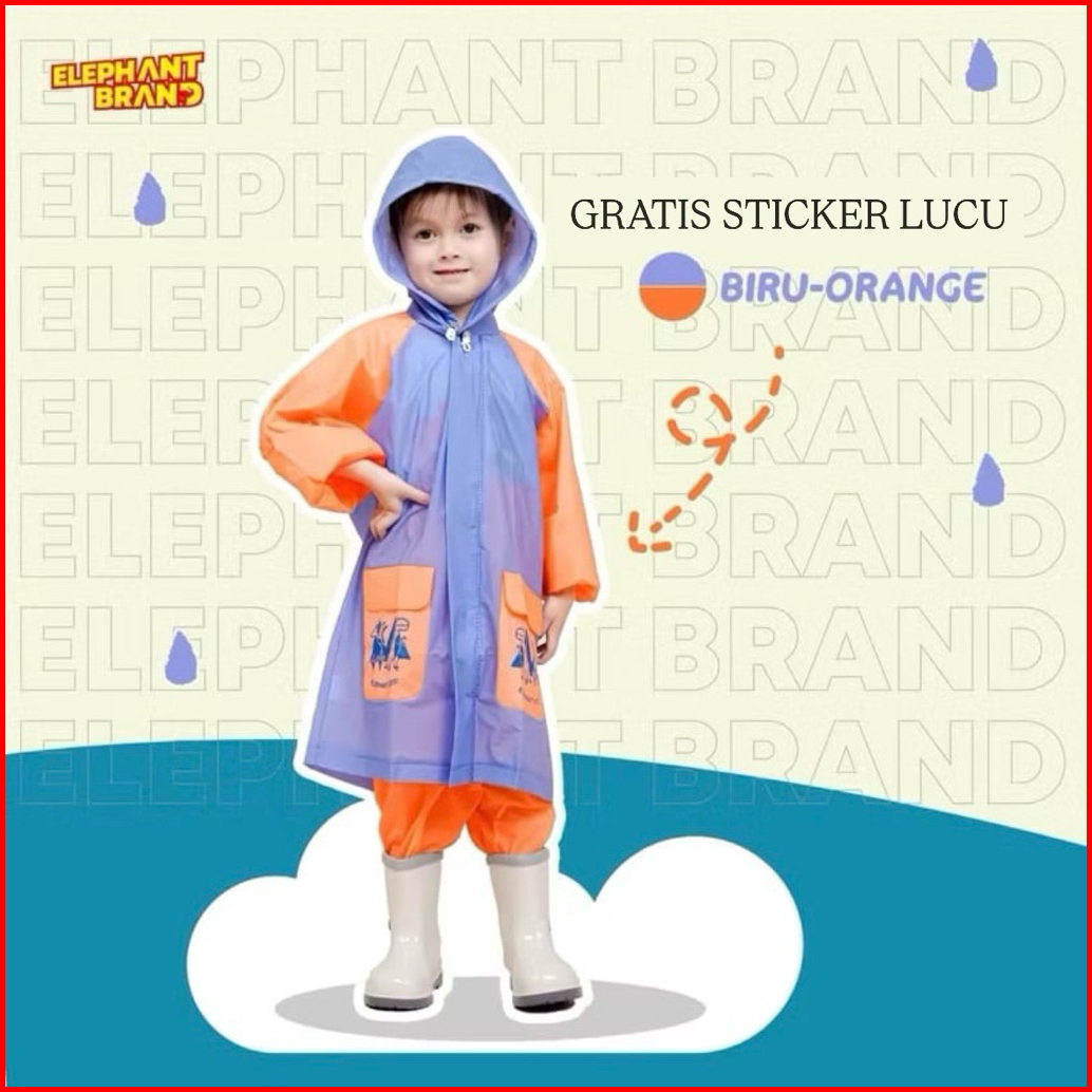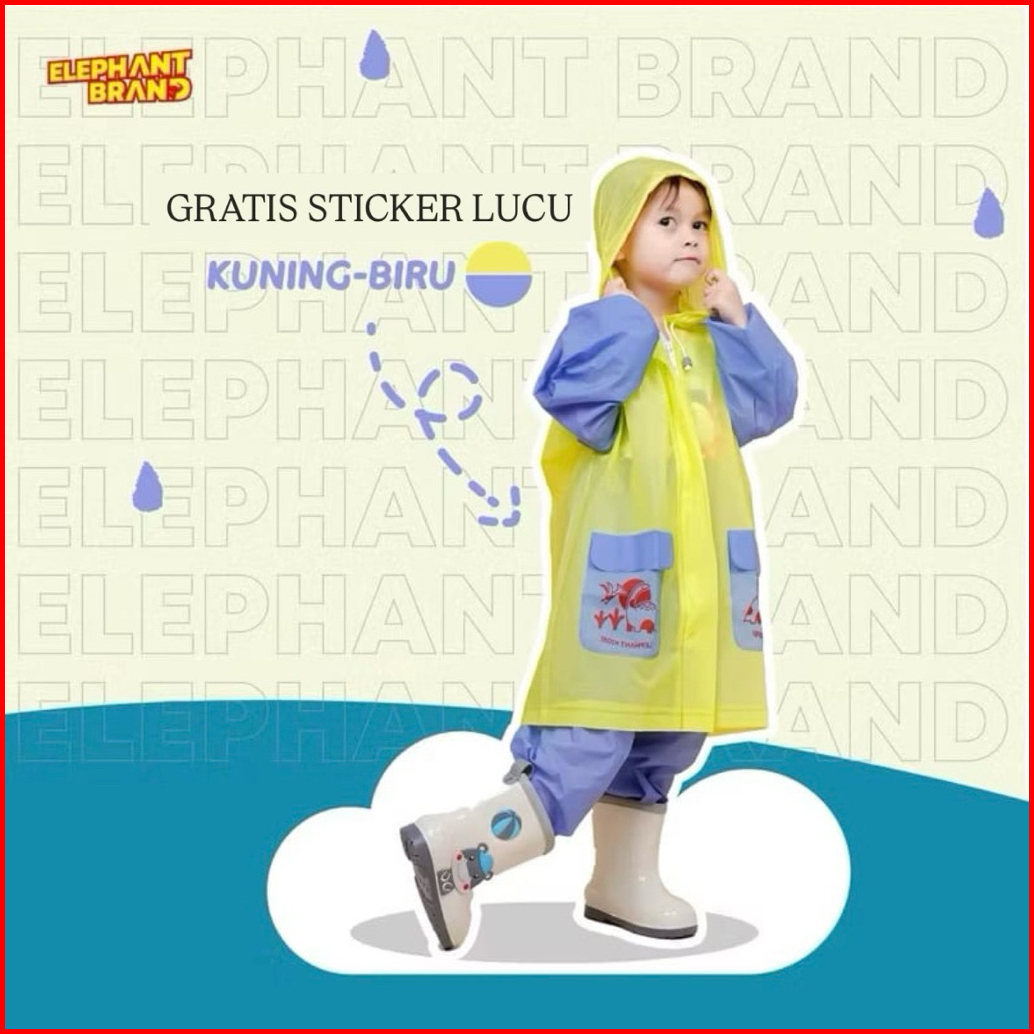 Jas Hujan Anak Setelan Gajah Untuk Usia 4-10 Tahun Gratis Sticker Lucu