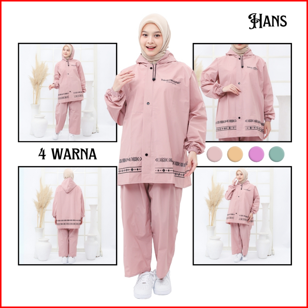 Jas Hujan Pria Wanita Dewasa Setelan Jaket Celana Tebal Hans Warna Pastel
