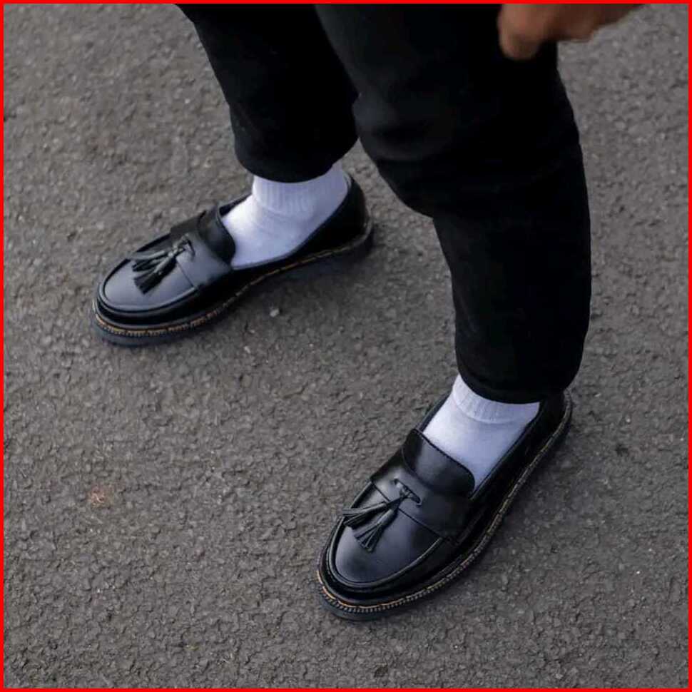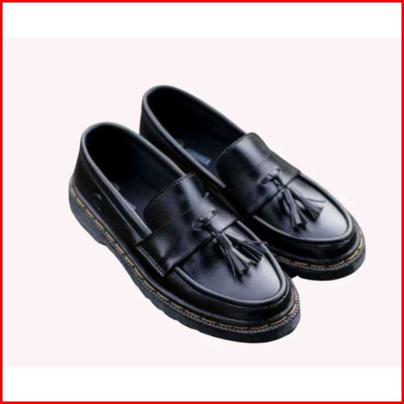Sepatu Pantofel Docmart Slip On Loafers Pita Terbaru Casual Formal Kerja Kantor Sekolah Hitam Pria Full Black