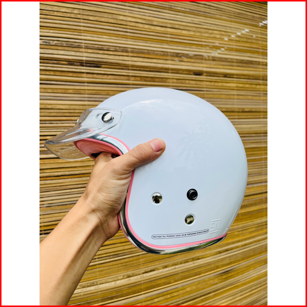 Helm Bogo Wanita Dewasa Terlaris Busa Pink List Chrome Sni