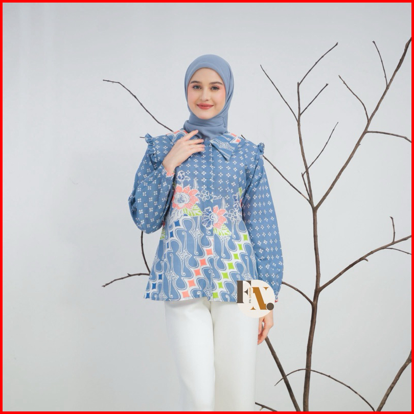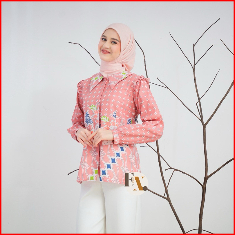 Blouse Batik Wanita Atasan Batik Kantor Baju Batik Wanita Lengan Panjang Motif Lily By Fn Grosir