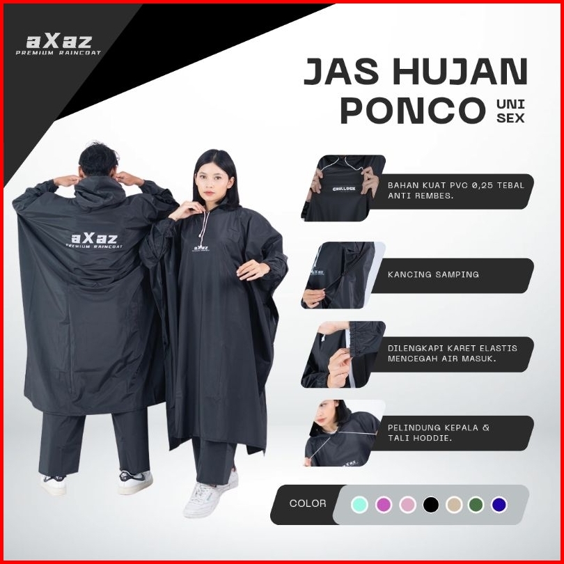 Axaz Jas Hujan Ponco Dan Stelan Ponco Celana Mantel Hujan Kelelawar Bahan Pvc Tebal Elastis Raincoat Termurah