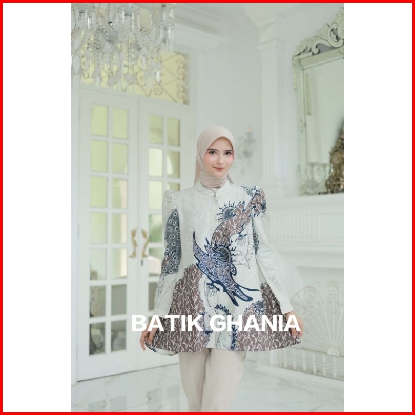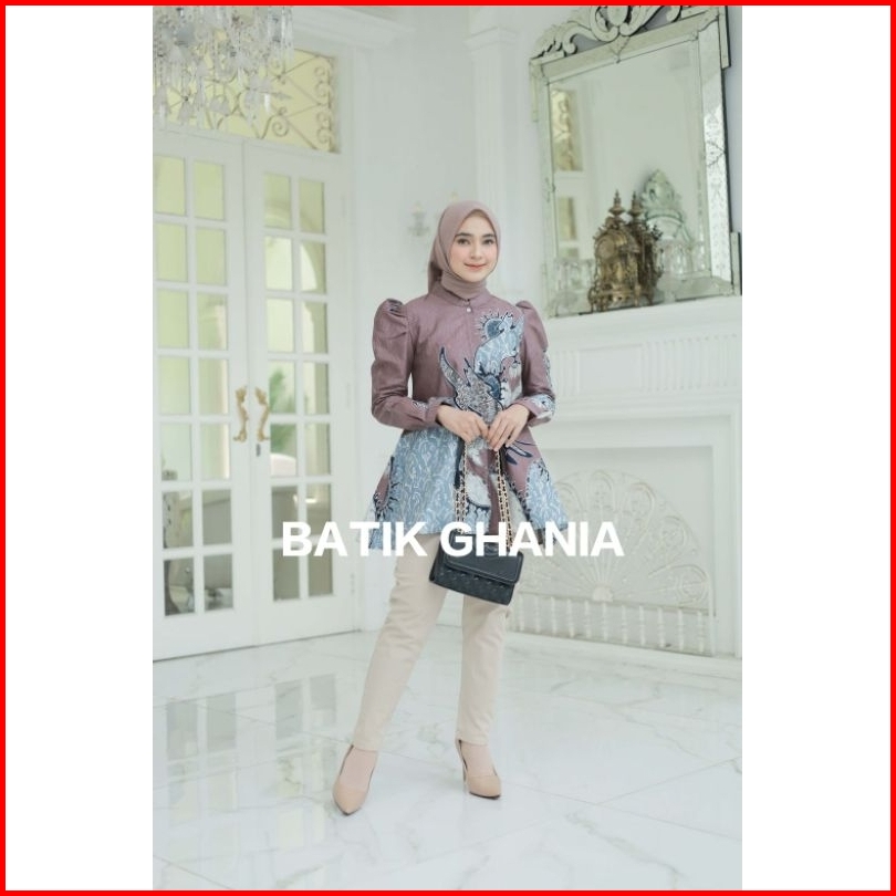 Blus Batik Wanita Atasan Batik Kantor Baju Batik Lengan Panjang Motif Blarak By Ghania Batik Store