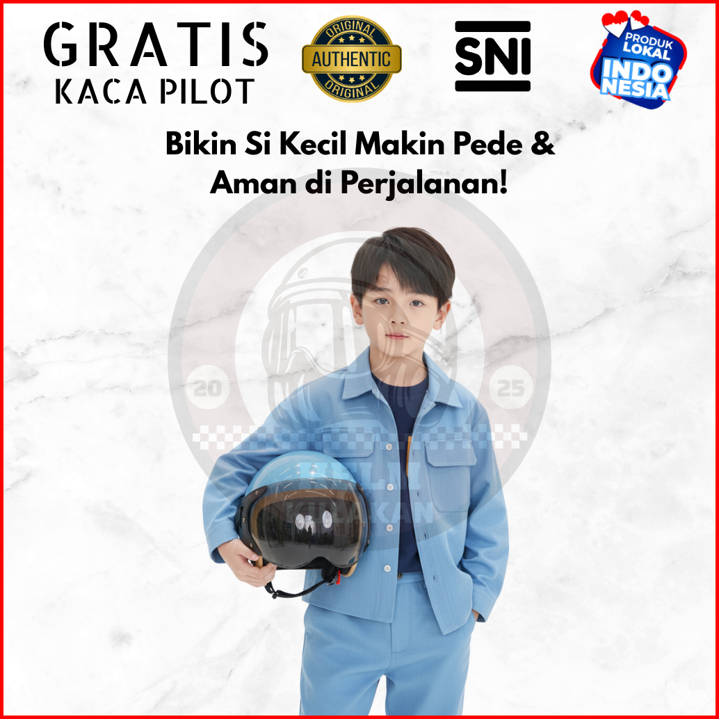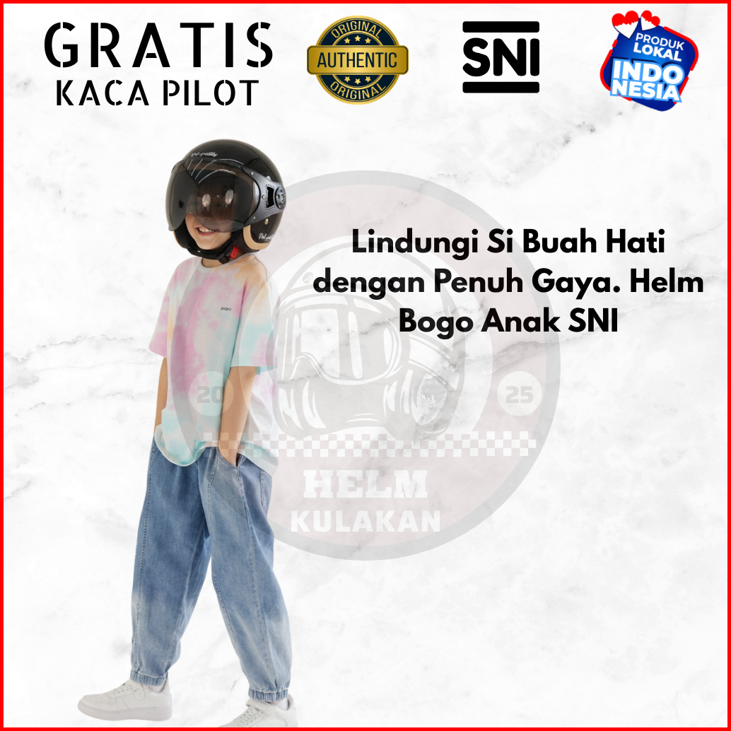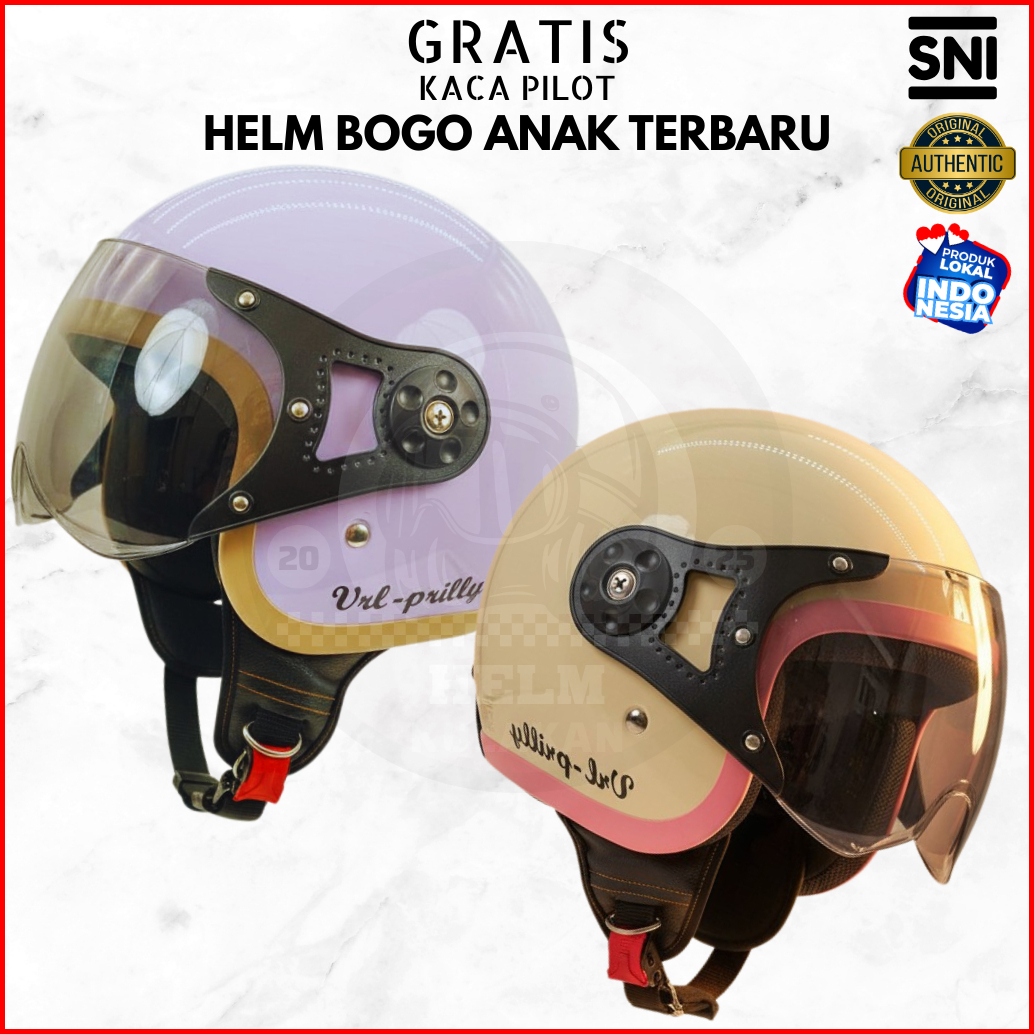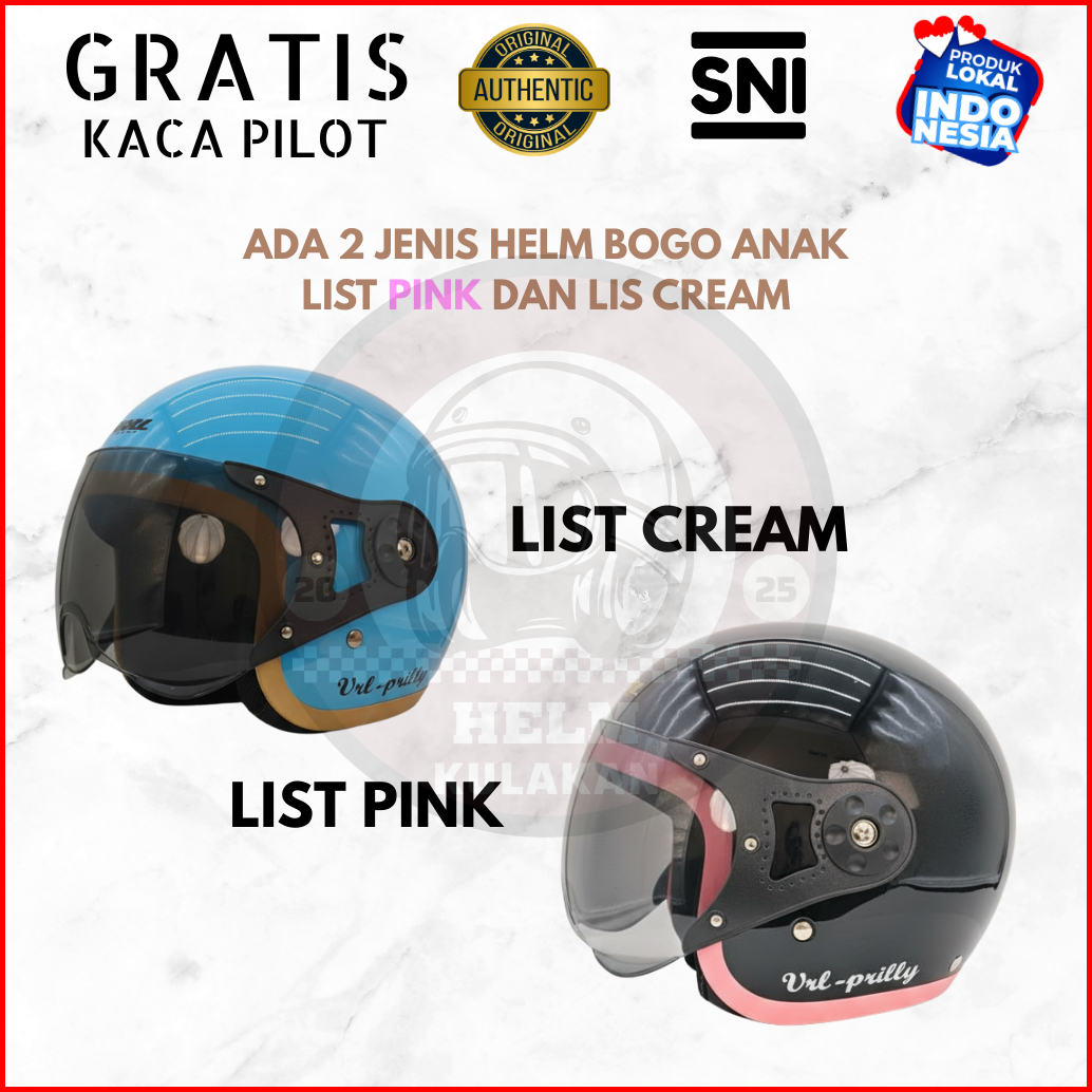 Helm Bogo Kaca Pilot Retro Anak Pria Wanita List Cream Pink Stylish Bahan Abs Dalaman Empuk Murah Berkualitas Sni