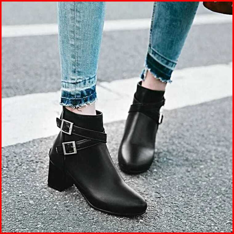 Cfstore Sepatu Heels Boot Wanita Gesper Dua M73