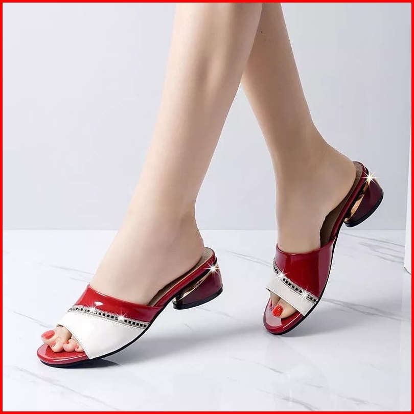 Sandal Heelas Hak Tahu Bulat Dua Variasi Varna