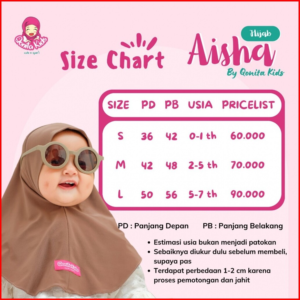 Qonita Kids - Aisha 0 - 9 Th Hijab Bergo Anak Perempuan Jilbab Kerudung Anak Dan Bayi Muslim Cantik Bahan Jersey Adem Da
