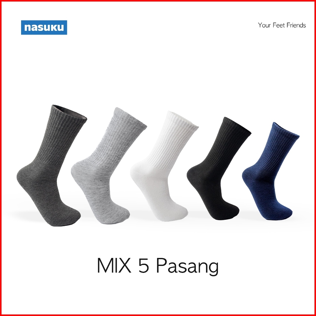 Nasuku - Paket 5 Pasang Kaos Kaki Oldshool - Paket Bundling Kaos Kaki Polos - 5 Pasang Kaos Kaki