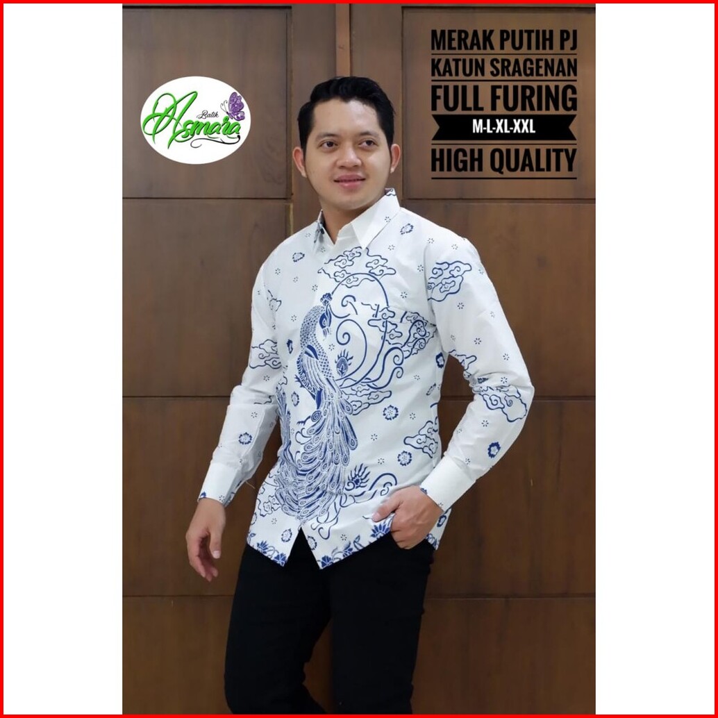 Merak Putih Kemeja Batik Pria Lengan Panjang Katun Halus Full Furing Batik Asmara